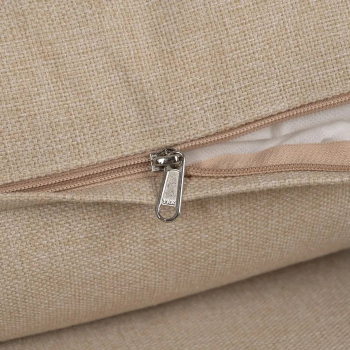 Material: rattan. Seat and backrest: 100% polyester. Filling: 25D foam. Seat cushion thickness: 12cm. Backrest cushion size: 60x60cm. Removable cushion cover. Indoor use. Seat height: 45cm. Backrest height: 72cm.