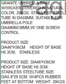 BASE SUNSHADE SYNTHETIC RATTAN 46X46X36 20KG.