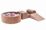 Foam 3 elements Playset with Ball Pit 90x30cm with 200 Balls Certified, Velvet, Beige: Light Pink/Grey/White
