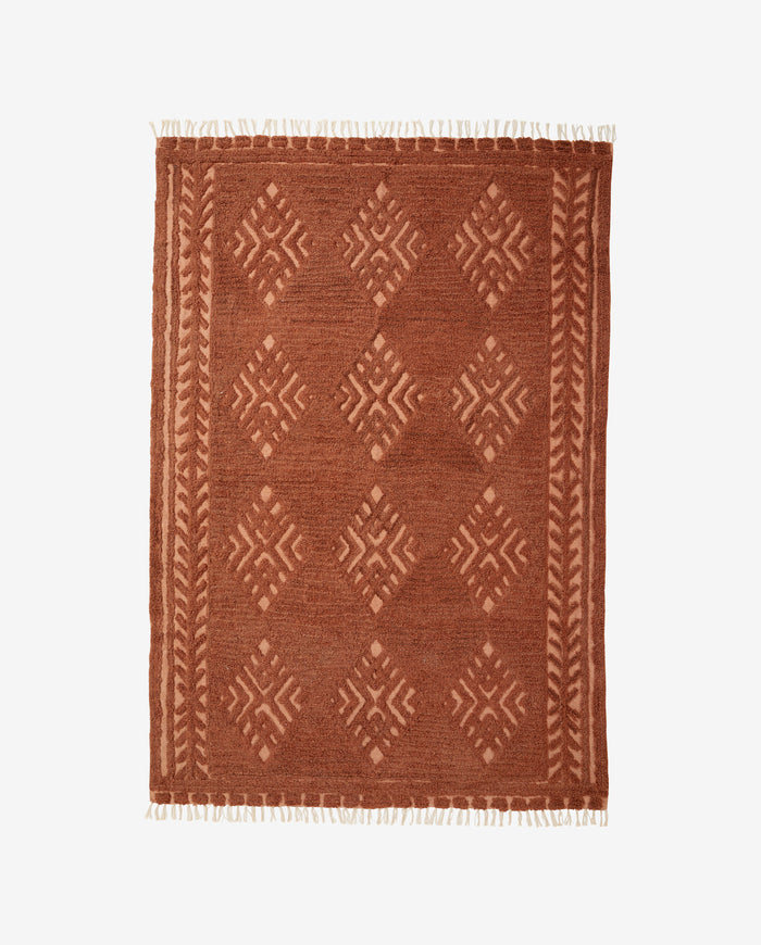 MARLA carpet in a wool blend. A carpet that, with its striking look, creates a pleasant and comfortable atmosphere in any room. MARLA comes in a warm rust color, which brightens up your décor and adds an exotic touch. A carpet with a thick, soft pile sure to provide a feeling of luxurious comfort in your home.The carpet is handcrafted, so irregularities and size variations may occur.
