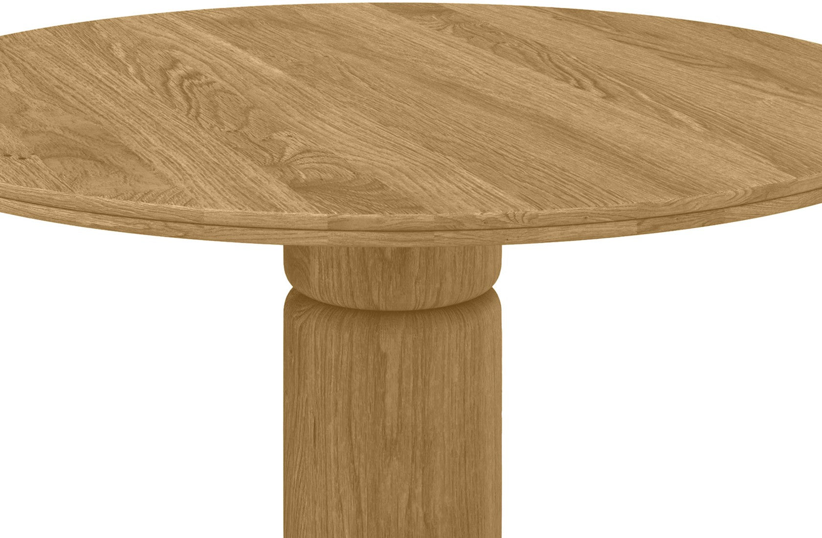 Production time 8-10 weeks Material Solid Oak Diameter (cm) 120 Height (cm) 76 Thickness Top (cm) 2.2 Thickness Leg (cm) 25