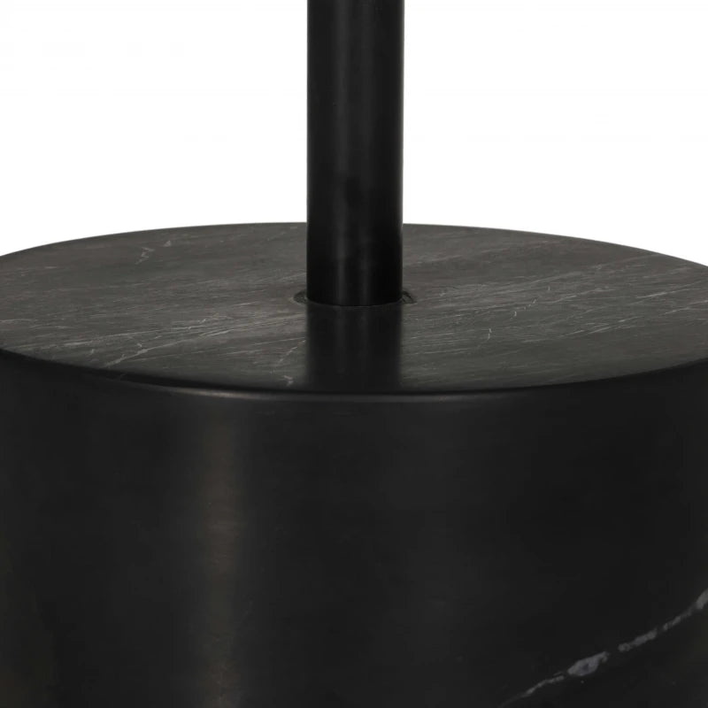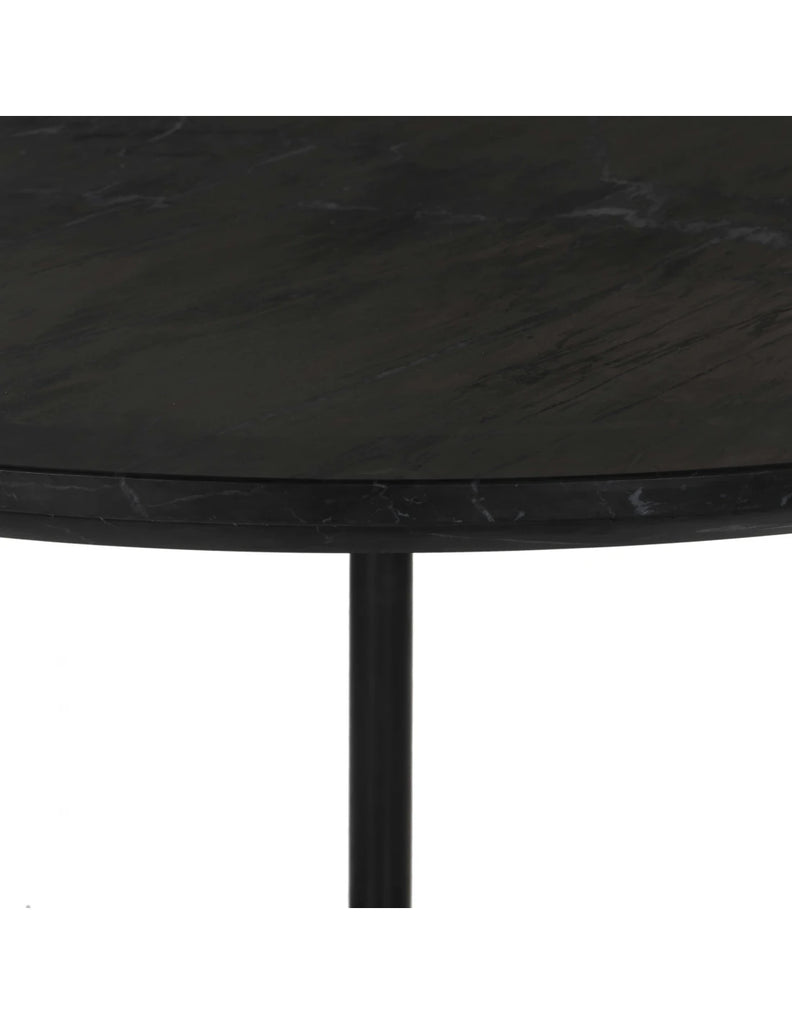 - Moss dining table with a black or natural phanther top with visible grain and a metal center base. A sophisticated and contemporary design for residential dining rooms or contract spaces.