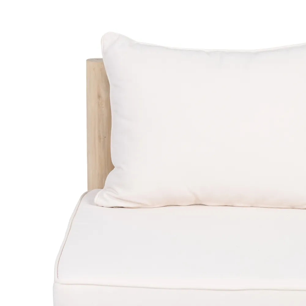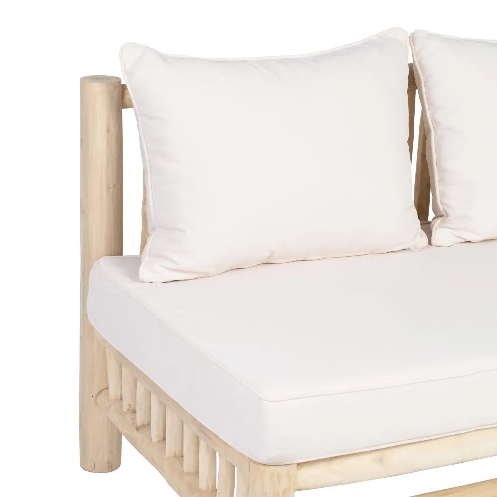 Material: teak wood. Seat height: 45cm. Back height: 40cm. Seat width: 132cm. Seat depth: 65cm. Legs height: 19cm. 100% polyester cushions with removable covers, padding: foam, dacron.