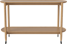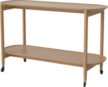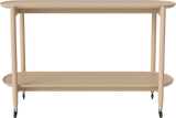 Elegant low shelf on wheels that can be used as bar trolley or flexible storage