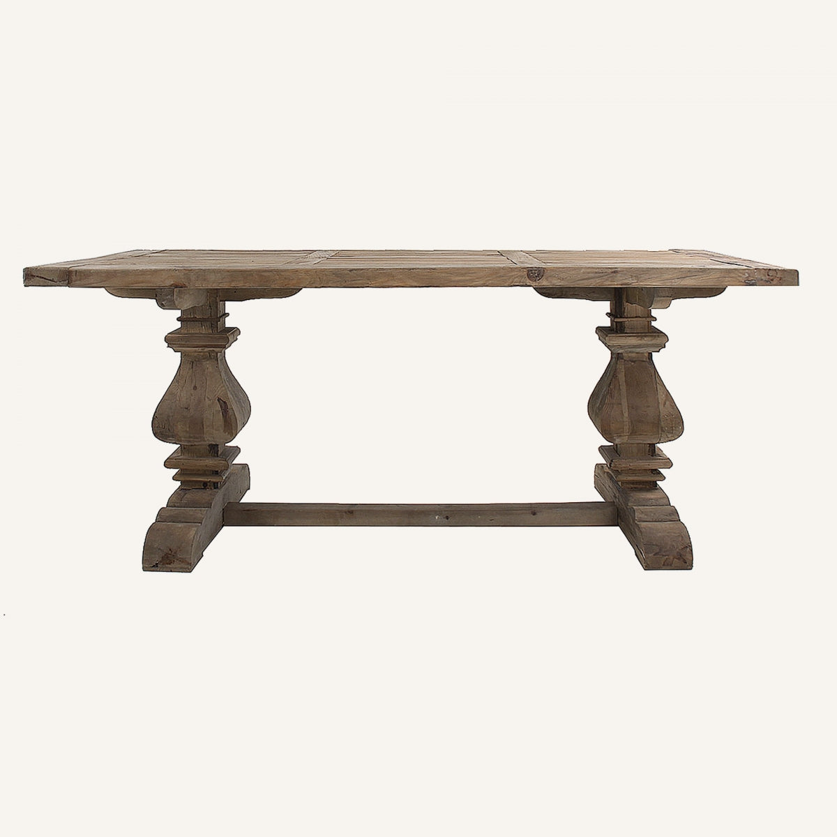 DINING TABLE MADE OF RECYCLED PINE WOOD, UNDER THE FAMILY OF DINING TABLES, NATURAL COLOR DISTRESSED, RUSTIC STYLE. MEASURES: 200 LENGTH x 100 WIDTH x 78 HEIGHT AND WEIGHT 71 KG. DETACHABLE.