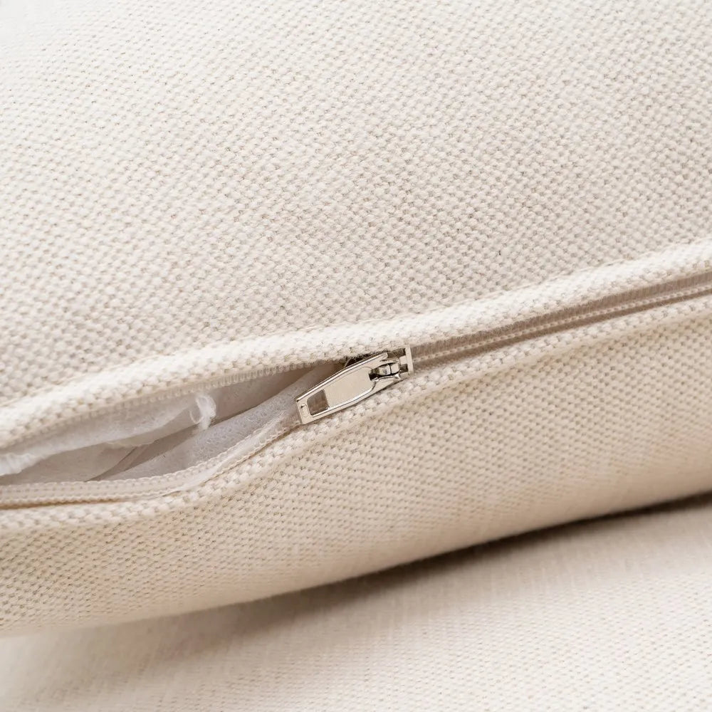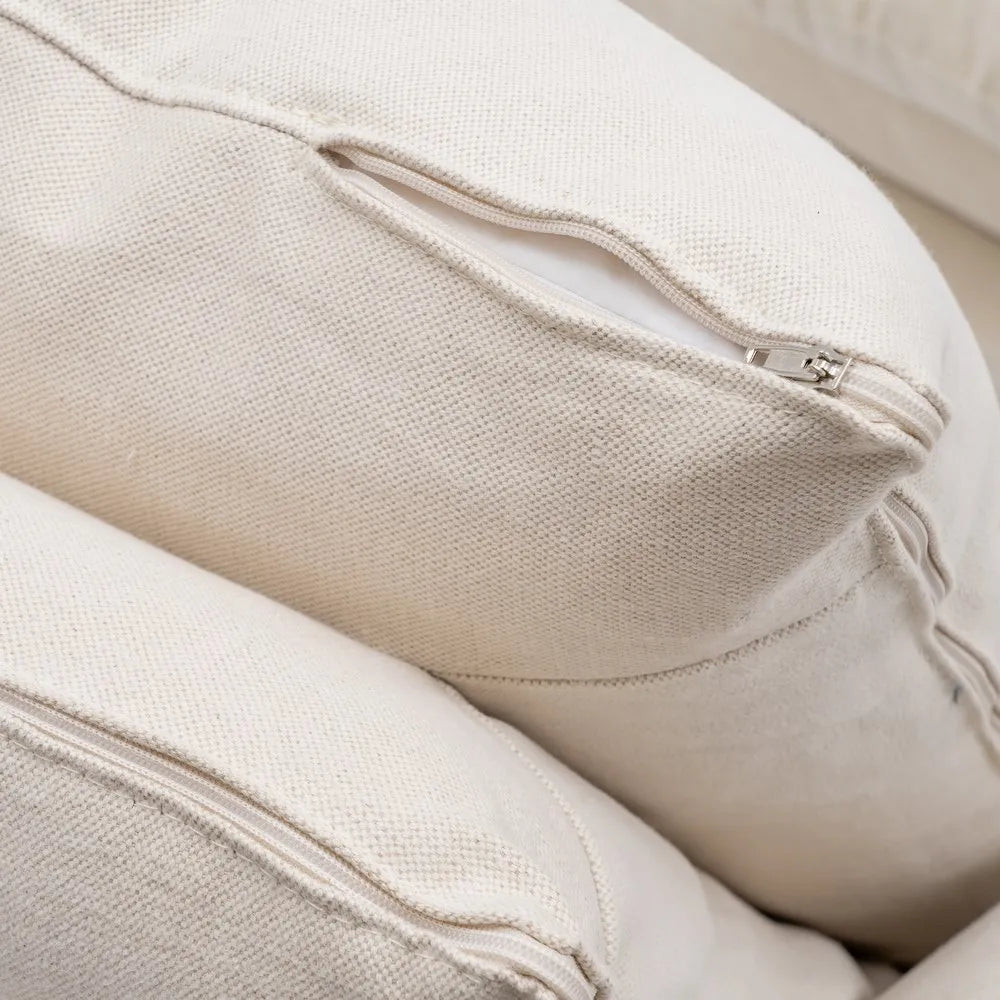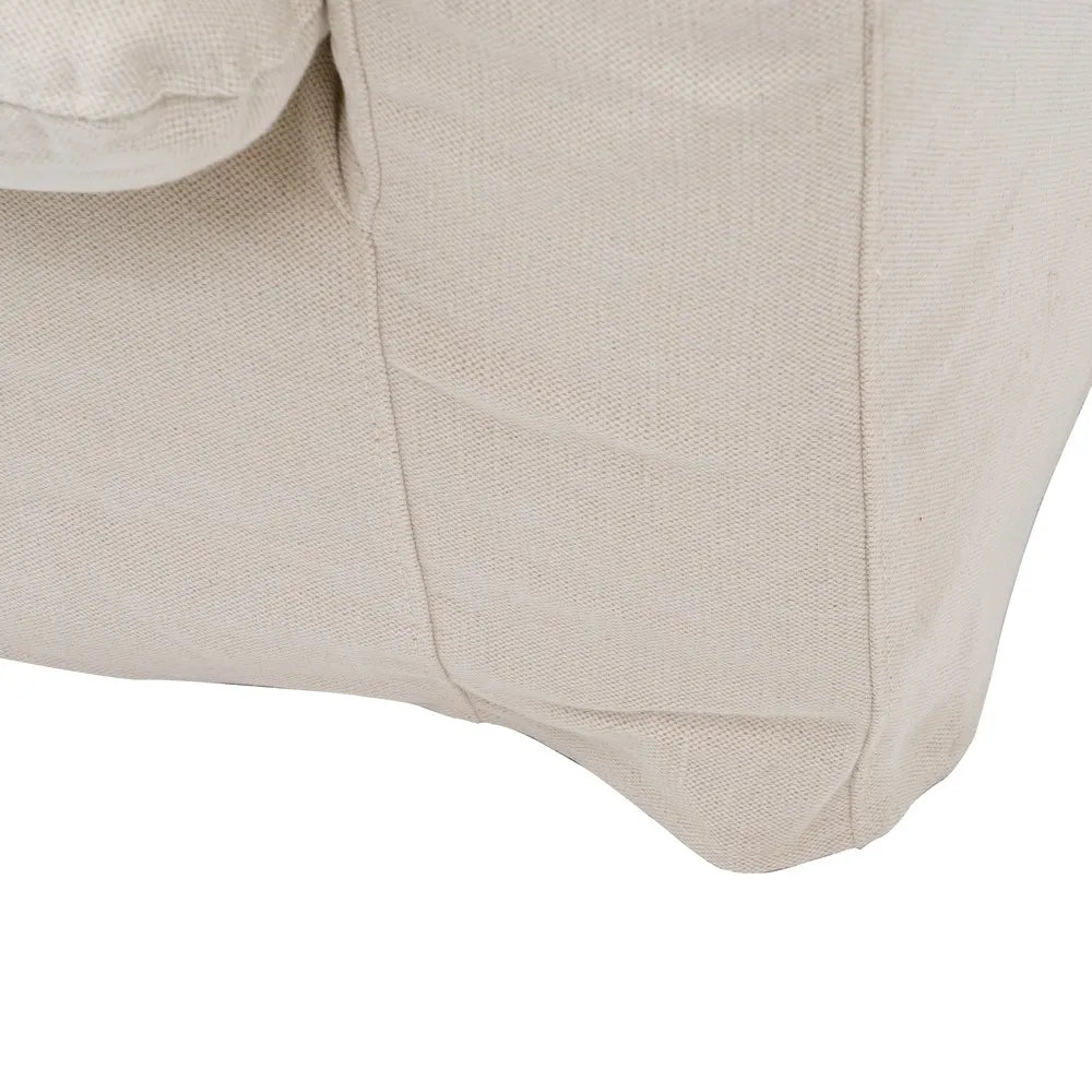 Removable model Fabric: 60% cotton / 40% linen. 390 gr./m2 weight. Structure: pine wood and chipboard. Seat height: 52 cm. Backrest height: 45 cm. Armrest height from the ground: 72 cm. Armrest height from the seat: 33 cm. Leg height: 11 cm. Material: pine Seat depth: 65 cm. Seat width: 125 cm. Seat cushions: foam, density 30 kg / m3. fiber and visco. Includes decorative cushions. Removable backrest and seat cushions with zipper. Dry clean only.