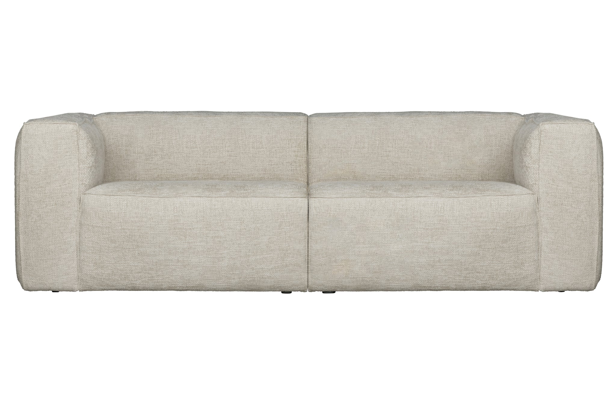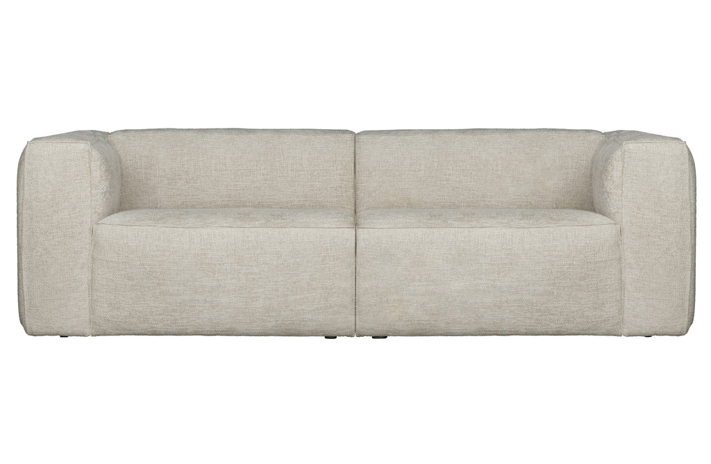 - Relaxed 3.5-seater sofa- Upholstered with melange fabric (100% polyester)- Tough, robust design- H 73 cm x W 246 cm x D 96 cmThe Bean sofa collection, with its robust design, provides a solid base for your seating area. The Bean is known for its simple lines, generous fabric options and high seating comfort. The low legs and the all-round upholstered quality ensure that the Bean item looks chunky but calm. The many versions can be combined endlessly, Go Big with Bean!MaterialThe frame of the Bean sofa consists of FSC-certified wood, such as: chipboard, beech wood, pine wood and plywood. The seat cushions have a filling of foam T38, normal foam with a long lifespan, and HR30, a foam with high elasticity, dynamic shape retention and ensures high user comfort. The foam has a high air permeability and quickly returns to its original shape. The back cushions are filled with the same foam for comfortable seating.The super strong Maribor melange fabric makes the upholstered furniture suitable for intensive residential use (Martindale 100,000). This soft fabric is made of 100% polyester and is very colourfast. The coarse melange weave gives the fabric a full and deep look. The light shades of colour create a comfortable, generous feeling.Dimensions- Height: 73 cm- Width: 246 cm- Depth: 96 cm- Seat height: 46 cm- Seat width: 192 cm- Seat depth: 66 cm- Armrest height: 27 / 73 cm- Armrest width: 27 cm- Backrest height: 27 / 73 cm- Feet height: 2 cm- Weight: 116 kg- Maximum load: 100 kg per seatMaintenanceIn case of any stains, place a slightly damp cloth on the stain and let it absorb the stain. Rinse the cloth and repeat the process until the stain is no longer visible. Use neutral soap for stubborn stains. Basically, we do not recommend impregnating our upholstered furniture. However, should you wish to do so, please test the impregnation agent on an invisible area of the fabric beforehand.