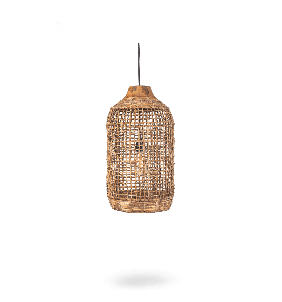 Available in three, S,M,L sizes, Brandy Lampshades are created using a metal framework and masterly wrapped in Abaca bark to create a rustic and pleasing weave appearance, the lamps are then topped with a crest of hand turned reclaimed teak. Casting a beautiful lattice glow upon surfaces and walls, the Brandy Koi Lampshade collection enhances any room or dwelling.