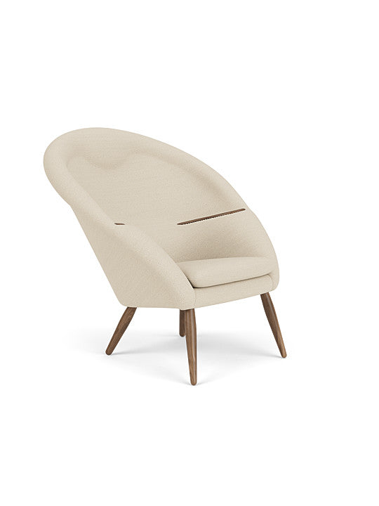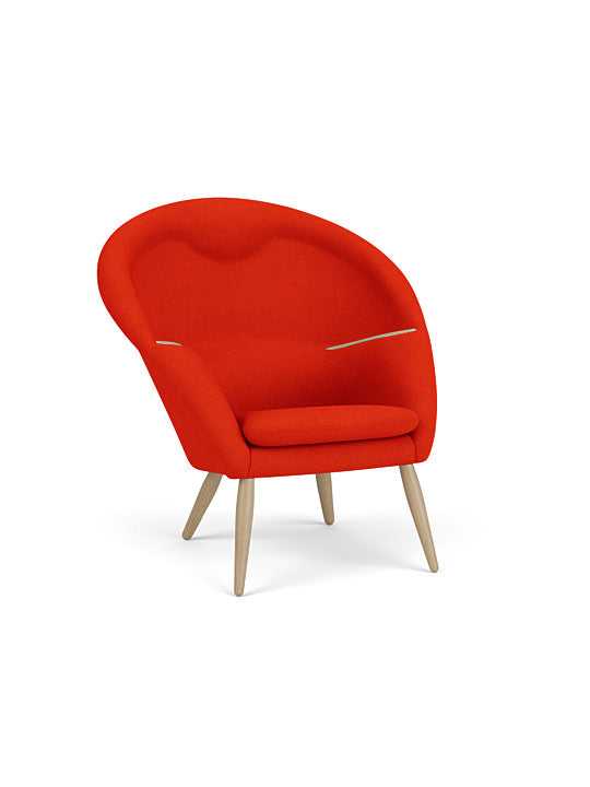 Originally dubbed Model 9, the Oda Chair was an ambitious design from the very beginning. Created by Arnold Madsen in around 1956, the aesthetic reinterpretation of an armchair has a complex horseshoe construction with an integrated headrest and beautifully incorporated armrests in wood. Offering comfortable support, the embracing design was initially – and mistakenly – attributed to Nanna Ditzel. In 2020 it was rightfully credited to Madsen. Constructed according to a vintage version as there are no drawings of the original design, the Oda Chair profiles a sublime level of craftsmanship, evident in the intricacy of its upholstery. Available with legs in natural oak or walnut.