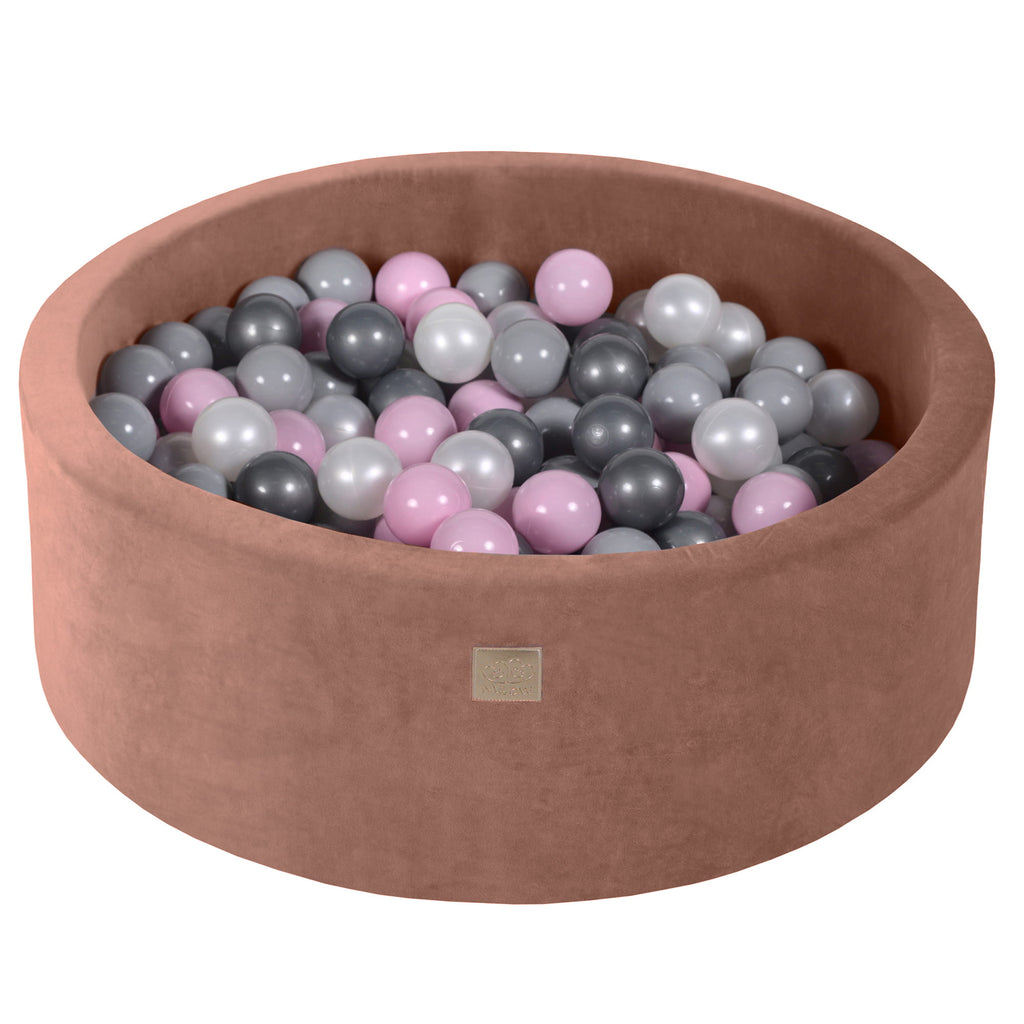 Baby Foam Round Ball Pit 90x30cm with 200 Balls 7cm Certified, Velvet, Beige: Pastel Pink/White Pearl/Silver/Gray