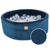 Baby Foam Round Ball Pit 90x30cm with 200 Balls 7cm Certified, Velvet Corduroy, Blue Marine: transparent, silver