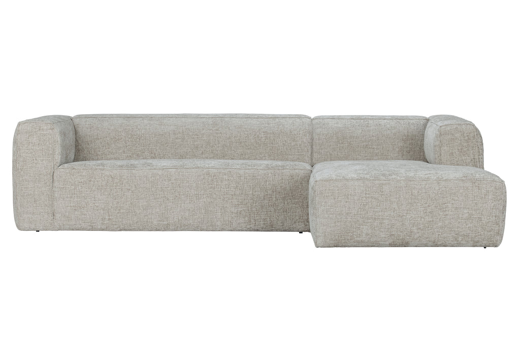 - Sturdy corner sofa- Upholstered in a melange fabric (100% polyester)- Coarse and voluminous design- H 73 cm x W 305 cm x D 96/175 cmThe Bean sofa collection comes from the Dutch interior design label WOOOD and, with its robust design, provides a solid base for your seating area. The Bean is known for its simple lines, generous fabric options and high seating comfort. The low legs and the all-round upholstered quality ensure that the Bean item looks chunky but calm. The many versions can be combined endlessly, Go Big with Bean!MaterialThe frame of the Bean consists of FSC-certified wood, such as: chipboard, beech wood, pine wood and plywood. The seat cushion has a filling of foam T37, normal foam with a long lifespan, and HR30, a foam with high elasticity, dynamic shape retention and ensures high user comfort. The foam has high air permeability and quickly returns to its original shape. The back cushion is filled with the same foam for comfortable seating.The super strong Maribor melange fabric makes the upholstered furniture suitable for intensive residential use (Martindale 100,000). This soft fabric is made of 100% polyester and is very colourfast. The coarse melange weave gives the fabric a full and deep look. The light shades of colour create a comfortable, generous feeling.Dimensions- Height: 73 cm- Width: 305 cm- Depth: 96/175 cm- Seat height: 45 cm- Total seat width: 241 cm- Seat width chaise longue: 112 cm- Seat depth: 69 cm- Seat depth chaise longue: 145 cm- Armrest height: 29 / 73 cm- Armrest width: 32 cm- Backrest height: 29 / 73 cm- Feet height: 2 cm- Weight: 137 kg- Maximum load: 100 kg per seatMaintenanceIn case of any stains, place a slightly damp cloth on the stain and let it absorb the stain. Rinse the cloth and repeat the process until the stain is no longer visible. Use neutral soap for stubborn stains. Basically, we do not recommend impregnating our upholstered furniture. However, should you wish to do so, please test the impregnation agent on an invisible area of the fabric beforehand.