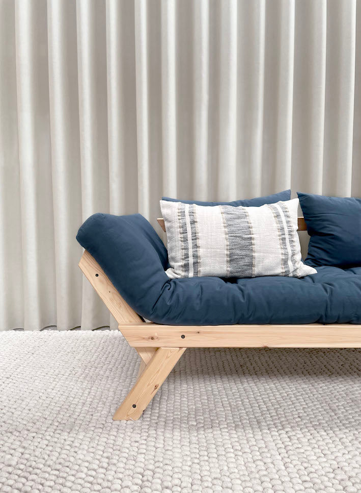 With both arms up Bebop makes an attractive and cosy space for two. With just a release of one of the arms, you will have a lounge chair with the perfect space for putting up your feet while diving into a book. When lowering the other arm Bebop invites you to both napping and dreaming. It's like getting three pieces of furniture in one.