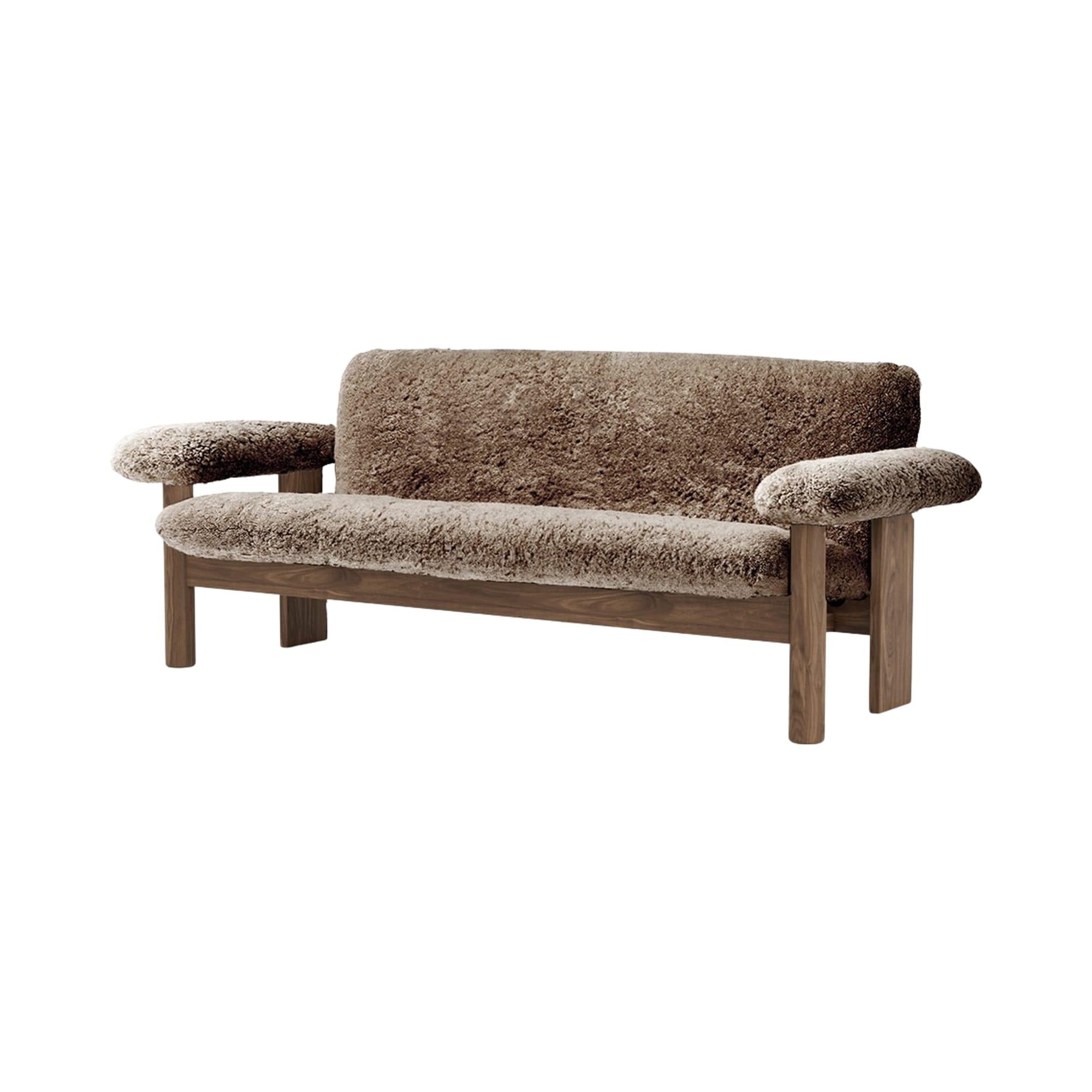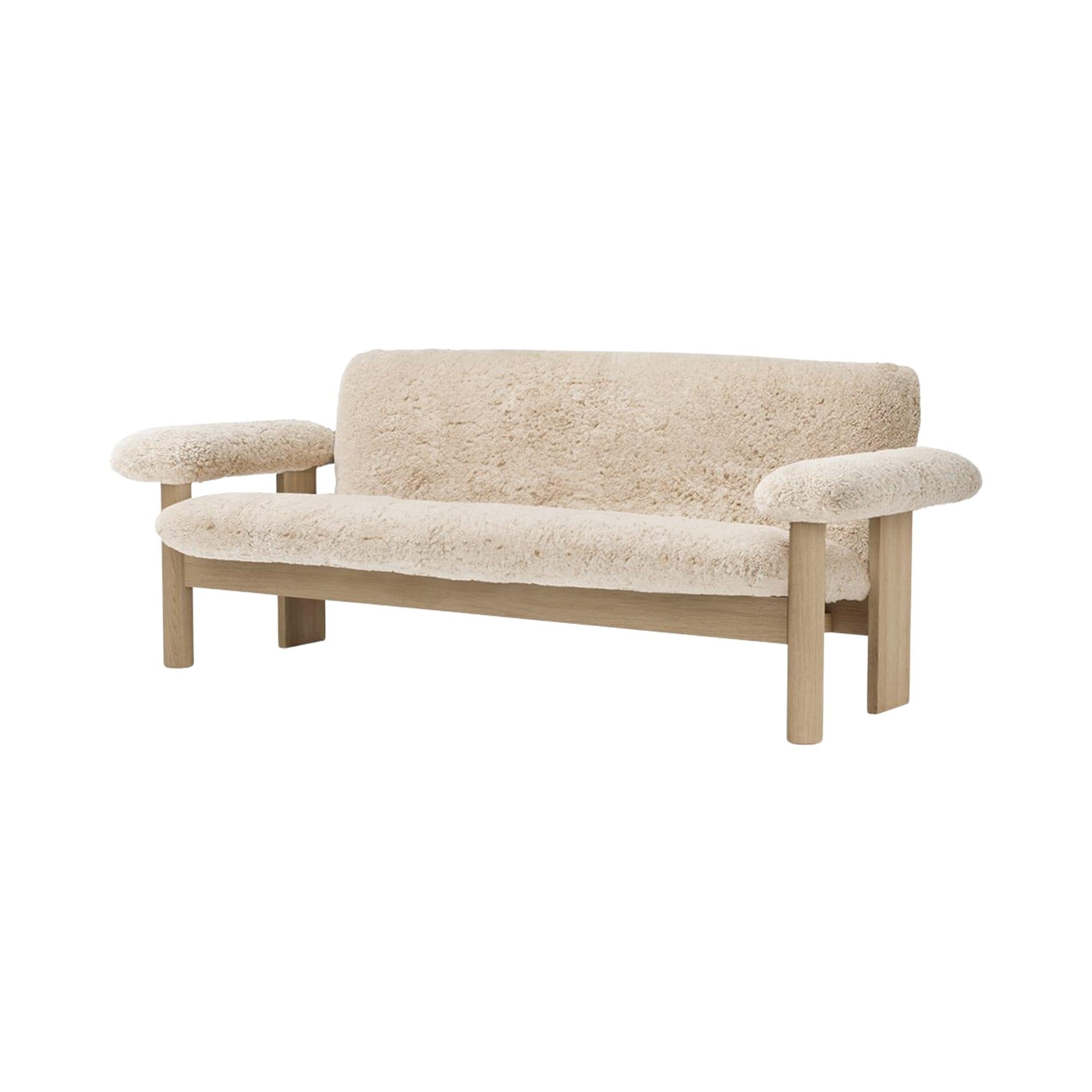 The Brasilia Sofa is a harmonious blend of Scandinavian mid-century aesthetics and Brazilian modernism. Large enough for reclining with ease yet small enough to fit compact spaces, its bold and inviting form comprises a solid wood frame with rounded front legs, exaggerated armrests and plush cushioning. Offered in three wood finishes and a comprehensive range of upholstery options, the low-back, two-seater design exudes a sense of relaxation and sophistication as a standalone piece or a part of the wider Brasilia collection.