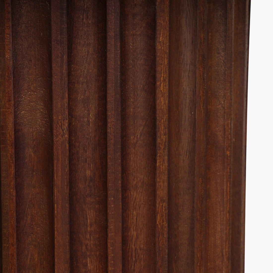The Bullnose side table reversed fluted is a stunning piece crafted from dark brown stained mango wood. Its elegant design features beautifully hand-carved fluted legs, adding a touch of artisanal charm to any space. Available in 2 sizes, this versatile table also comes in a light, natural finish.