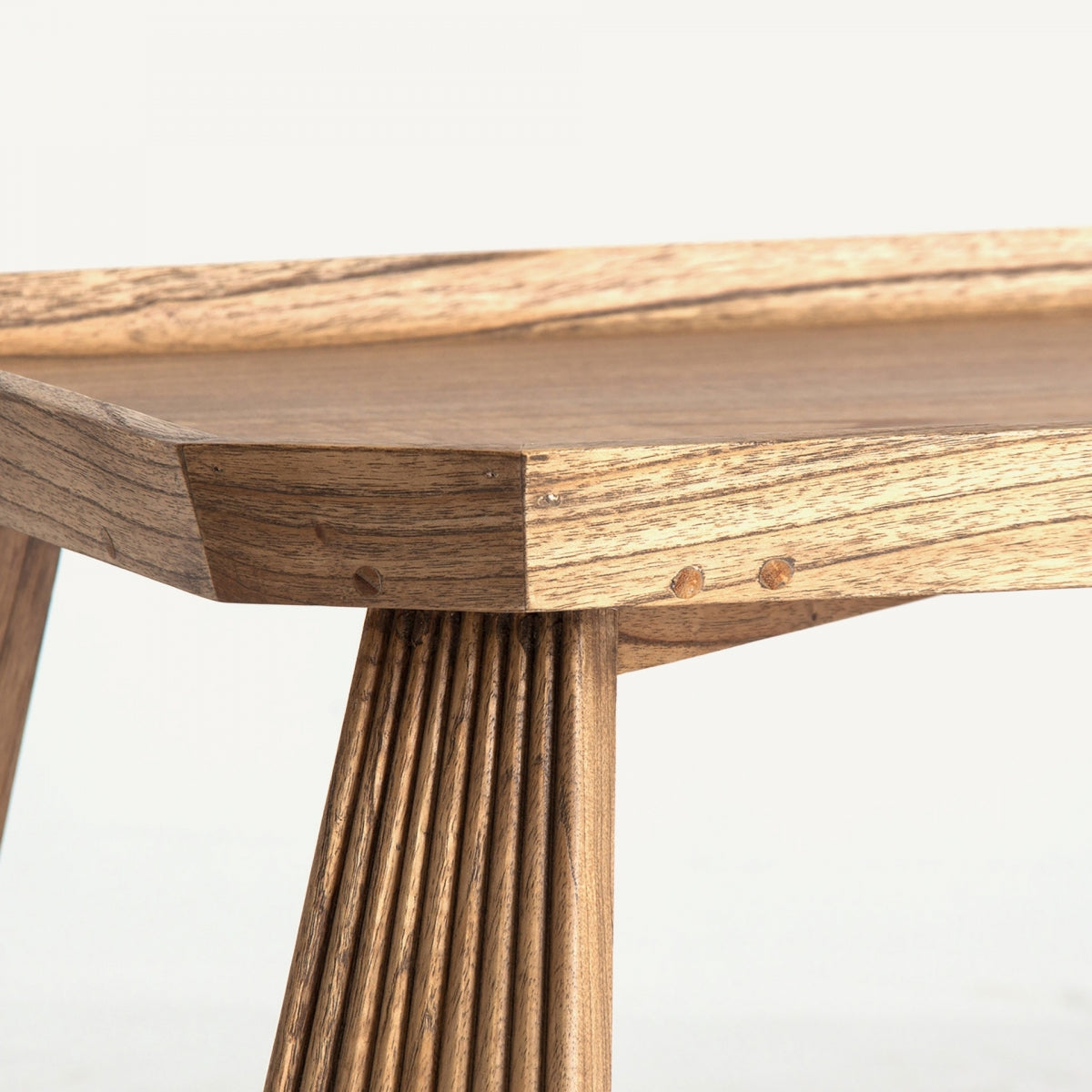 Coffee table made of natural brown mindi wood, measuring 140 x 60 x 40 cm, ideal for the center of the living room. Its elongated design with robust legs offers a rustic and modern style that brings stability and elegance to the space. This table is perfect for placing decorations, magazines, or drinks, providing a functional and decorative space. Its sturdy structure makes it an ideal choice for spaces seeking a natural and cozy touch.