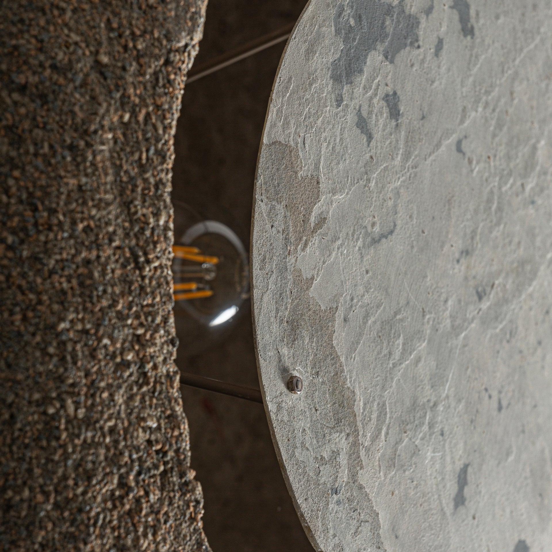 Wall lamp, made of concrete in grey, combined with grey paper mache and beige stone.
