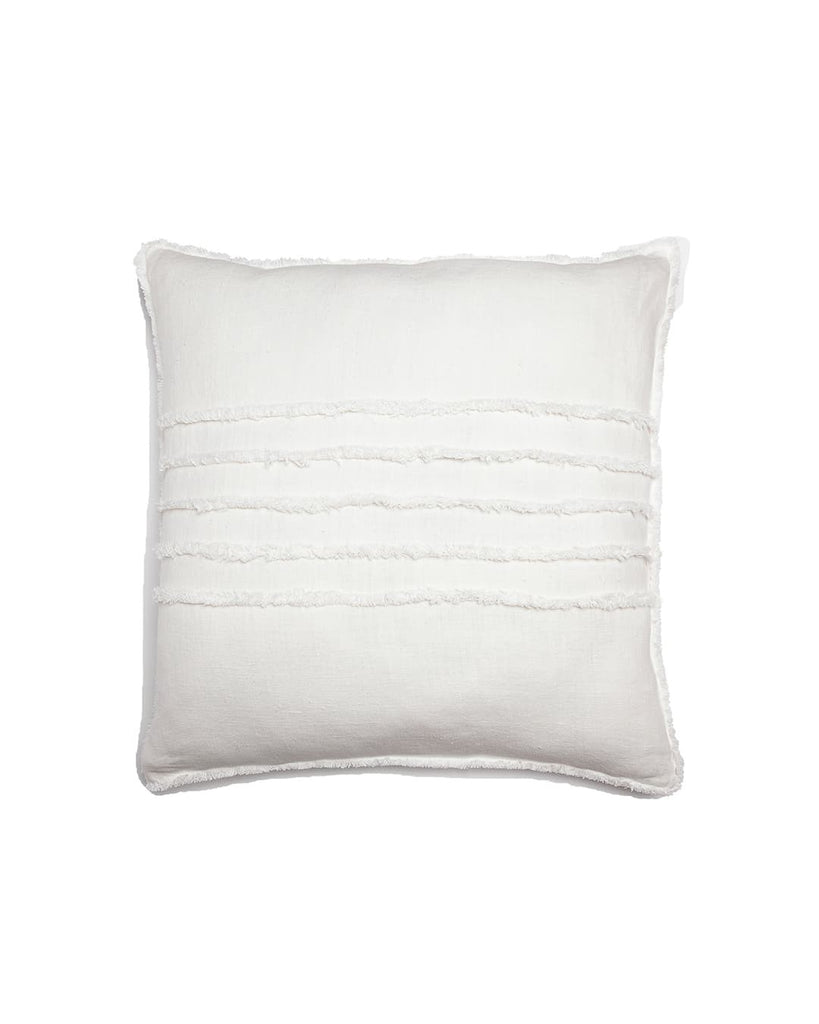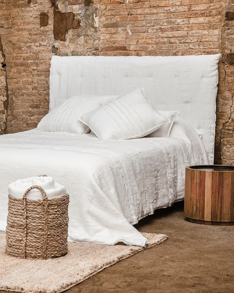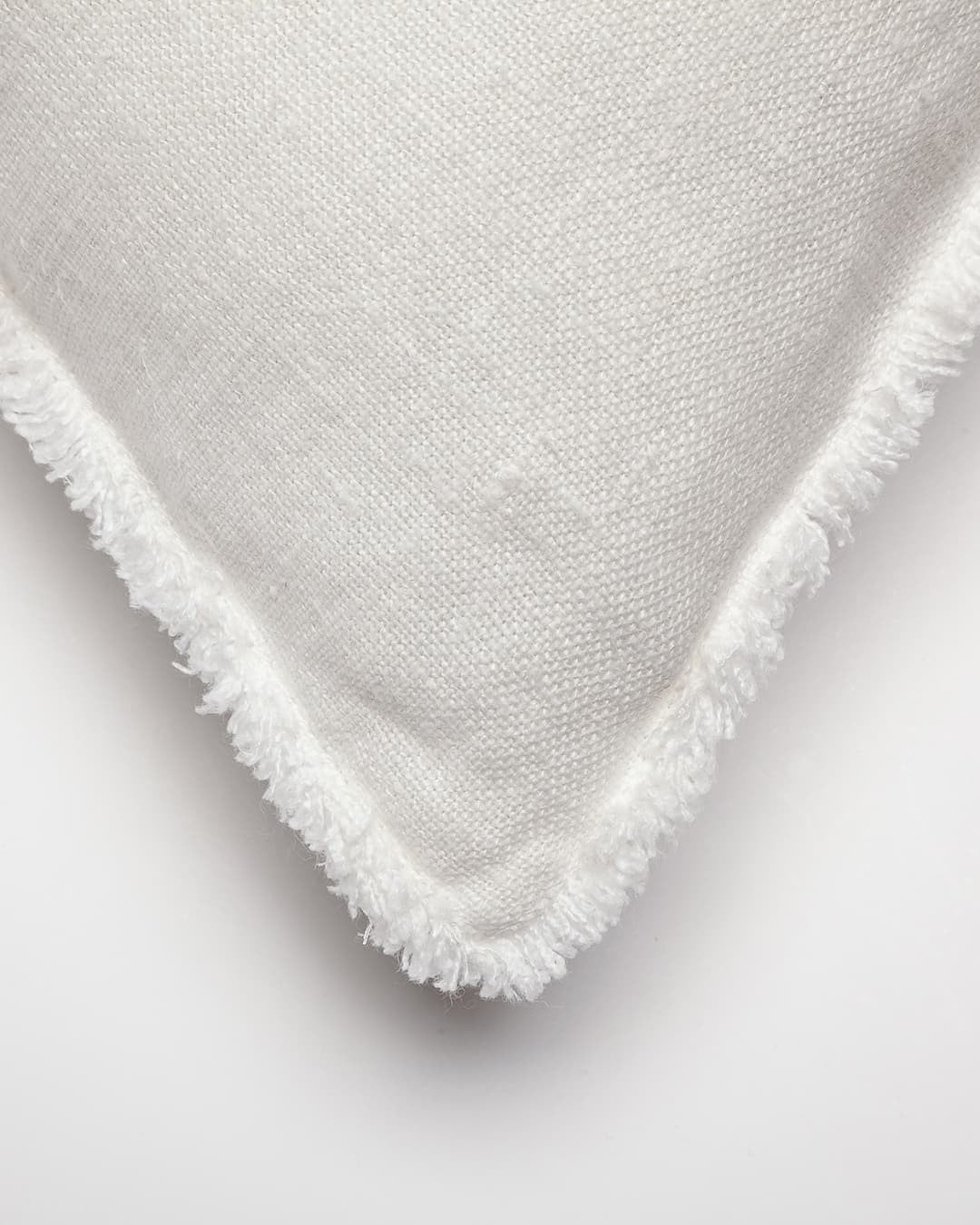 White 60 is a linen cushion cover that incorporates a design with five fine central lines sewn in embossed. It stands out for the combination of linen textures of the same shade, also incorporating bangs that adorn each of the edges of the cover. It belongs to the GAJAN line of designs that highlight the beauty of playing with the different possibilities of the same material. Each cover is handmade, hand-woven in natural linen from sustainable crops in India.
