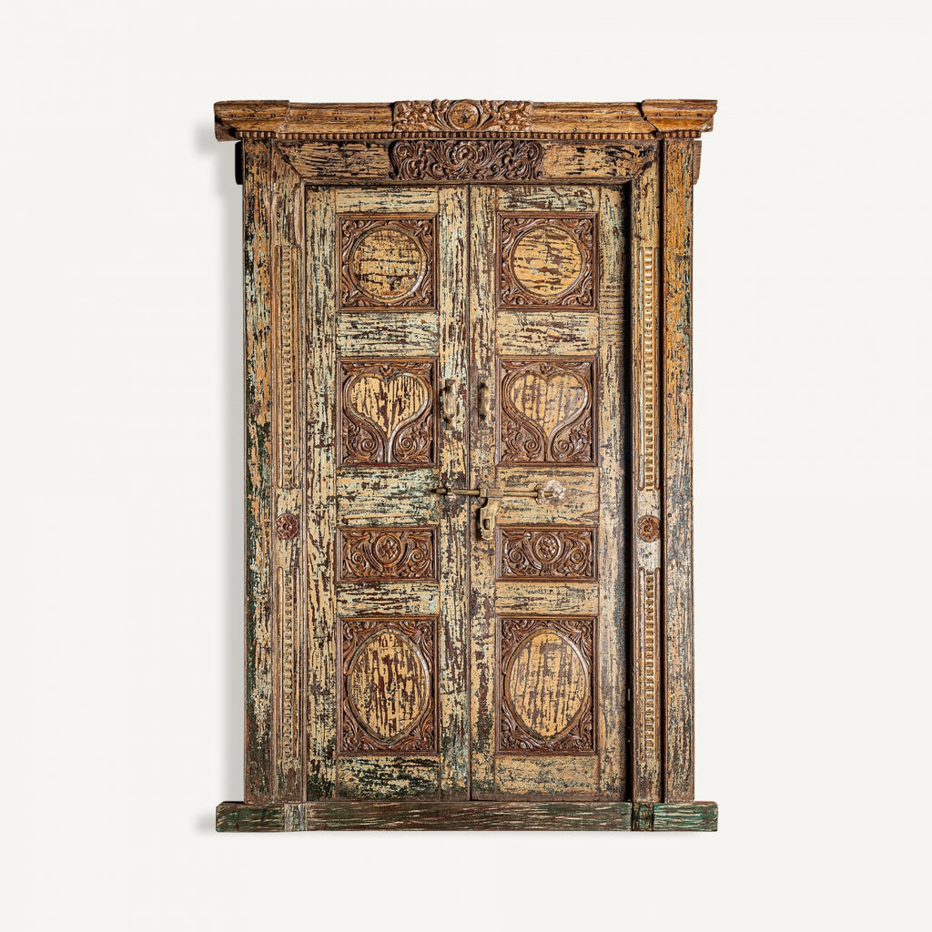 Door jelen, brown tones distressed colour, style eastern / oriental. Made of mango wood. Product detachable.