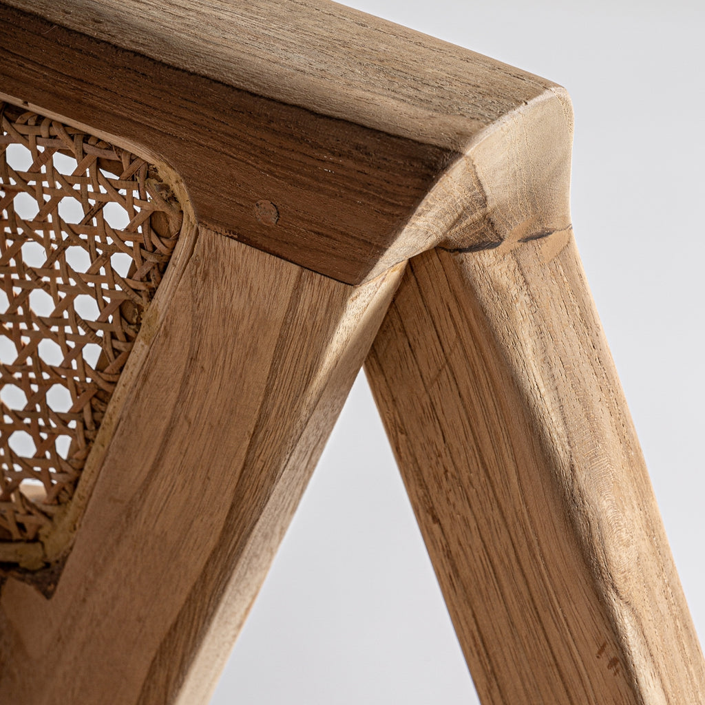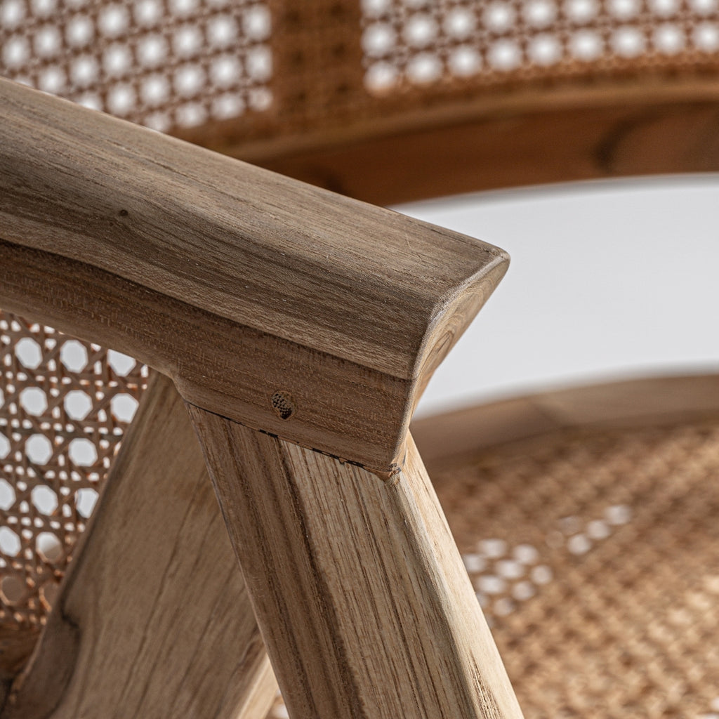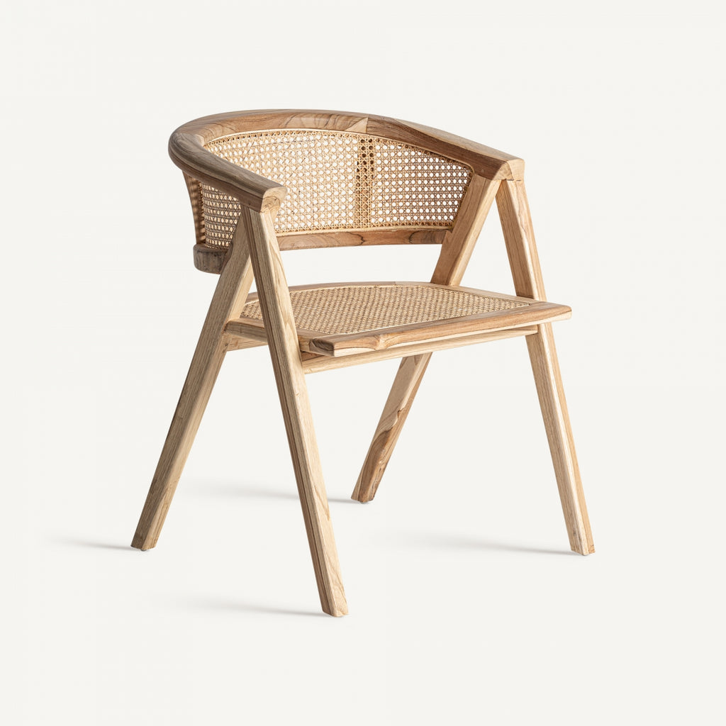 Ean chair, brown colour, contemporary style. Made of teak wood, combined with teak root.
