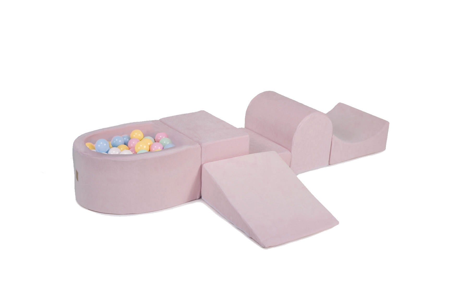 Foam Playset with Small Ball Pit Playground for Children with 100 Balls Certified, Velvet, Light Pink: Baby Blue/White/Mint/Pastel Pink/Pastel Yellow