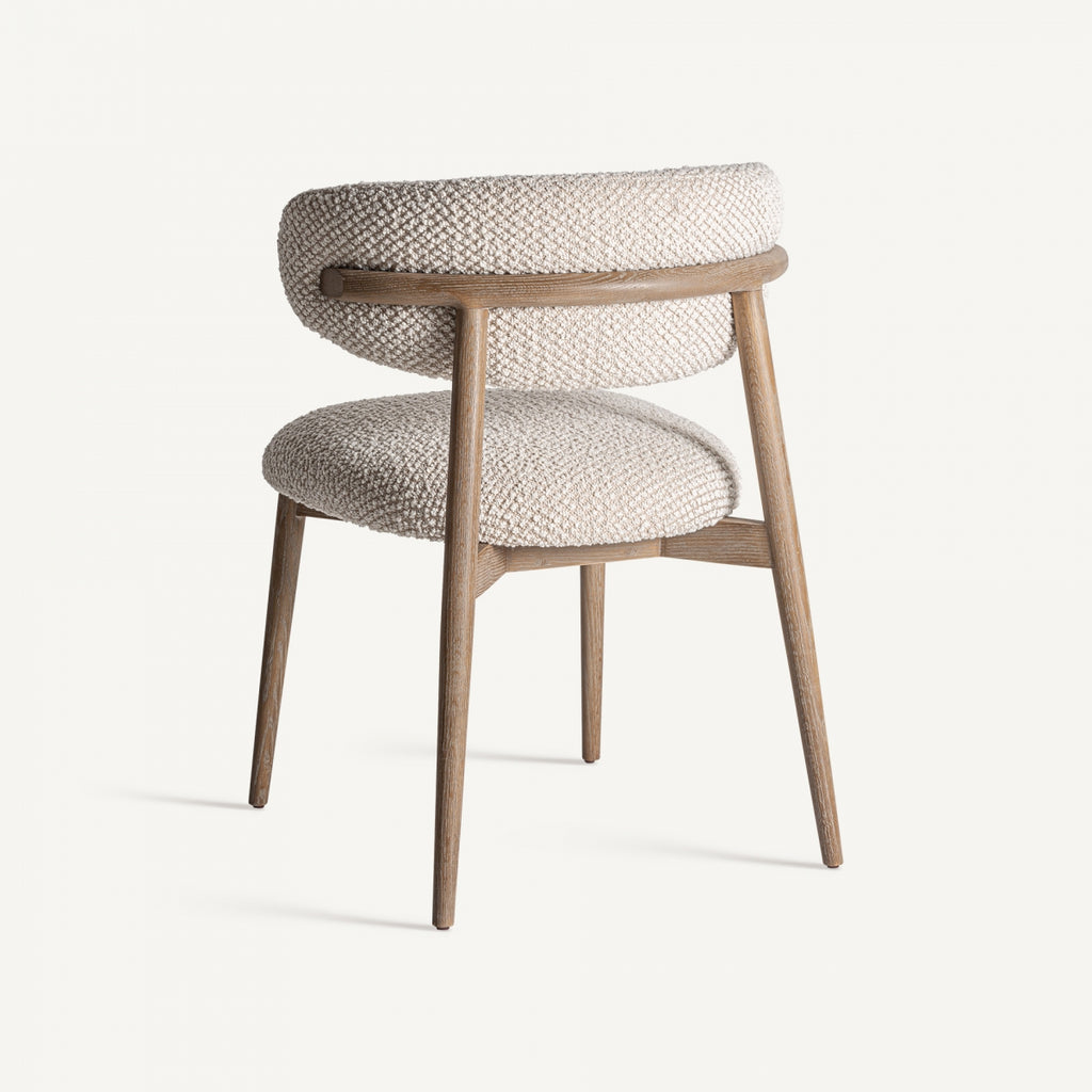 Gloenza chair, off white colour, contemporary style. Made of ash wood, combined with polyester and foam.