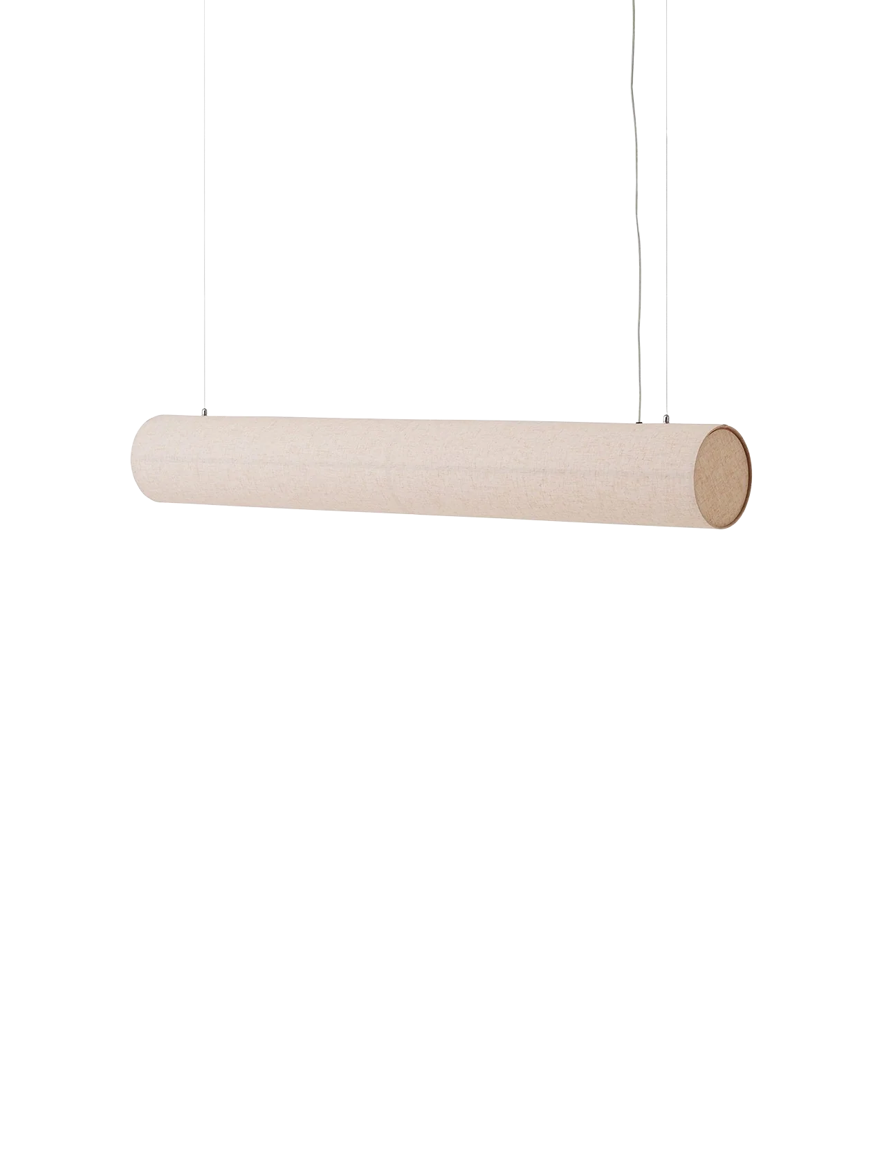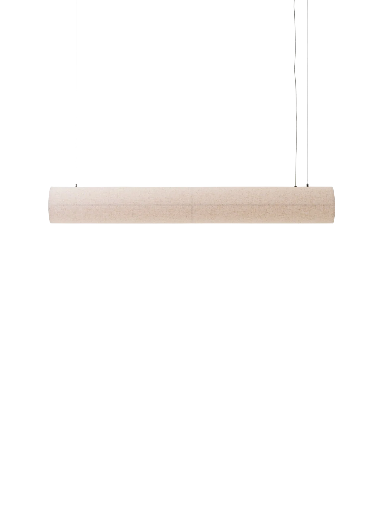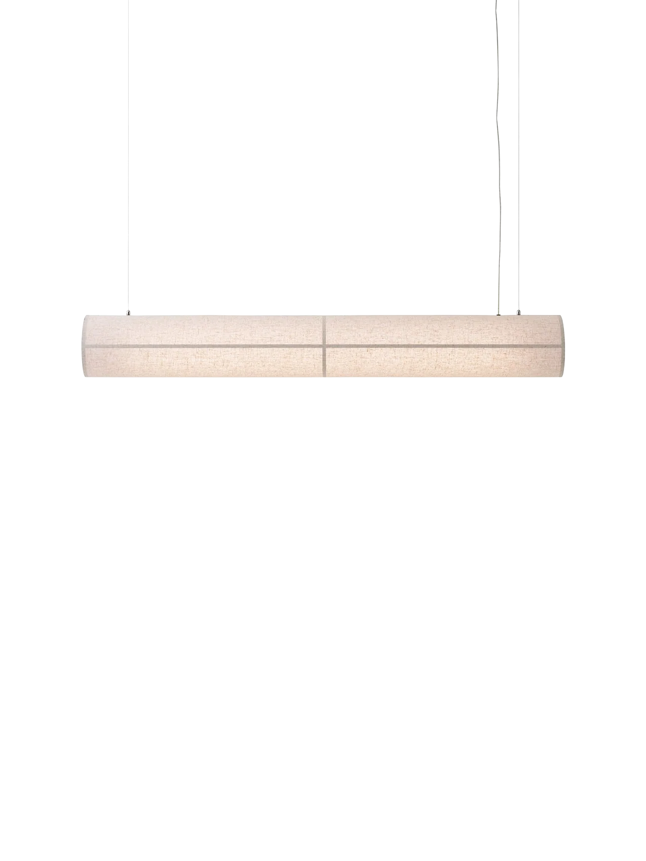 Designed to bring serenity and sophistication to a space, ideal over a dining table or desk, the Hashira Linear Pendant Lamp redefines the popular lighting collection with its horizontal form, delivering ambient lighting in a minimalist aesthetic. The streamlined lamp appears to float on air, suspended from the ceiling by wires and its raw linen shade held in place by magnets, eliminating the need for bulky screws. The dimmable, replaceable LED light source emits a warm glow, bright enough for tasks yet subtle enough to add ambience.