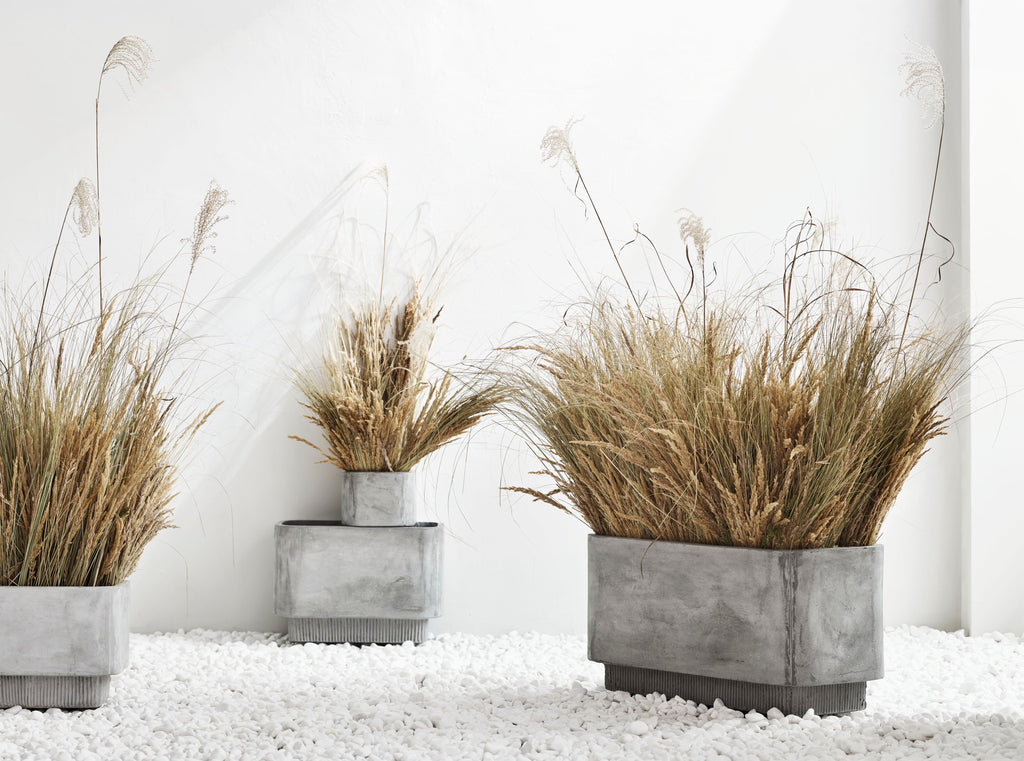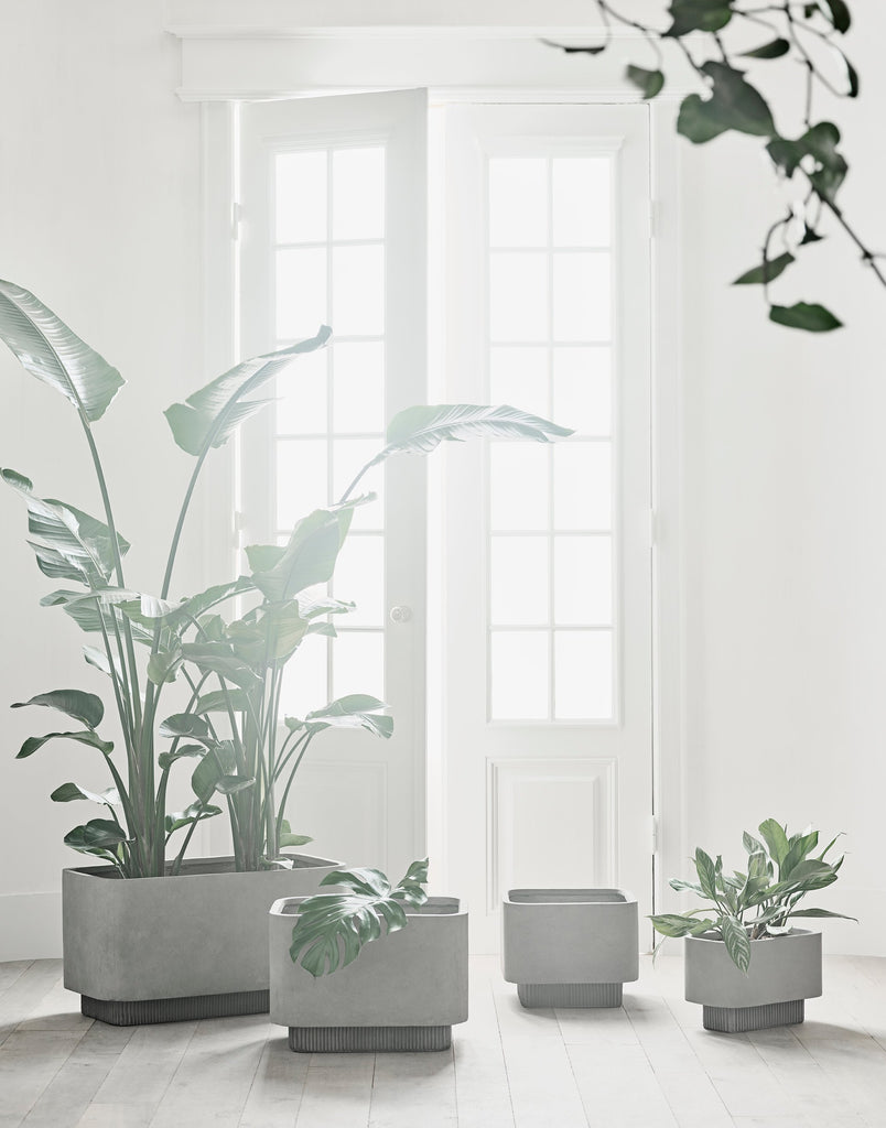 Highlands is a series of flower pots where the designers had a clear desire to create a green landscape inspired by architectural lines. The distinctive design language means the pots can be used as a room partition both inside and outside. Highlands is made of coloured fibre concrete and is naturally waterproof.