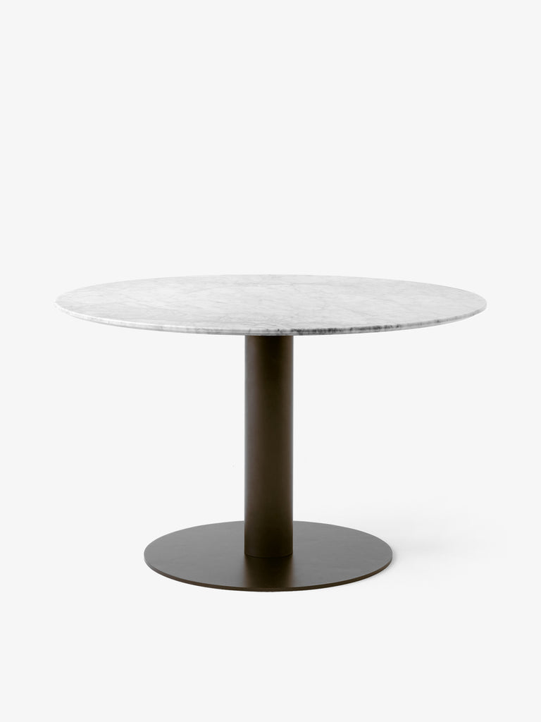 The table top is made from marble and the base is made from bronzed or black powder coated steel