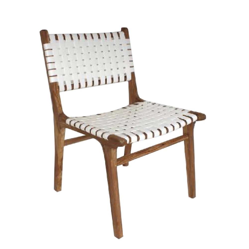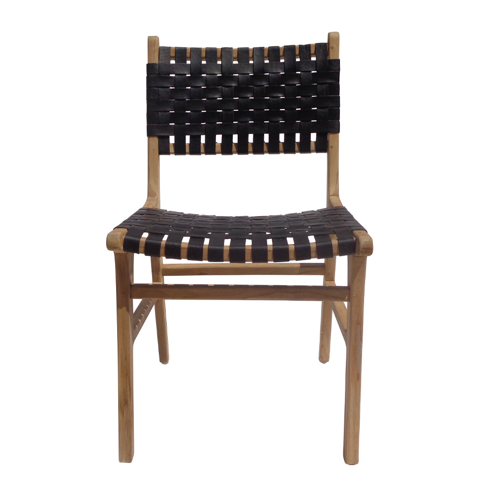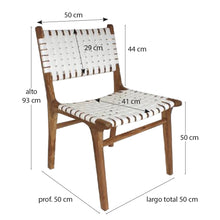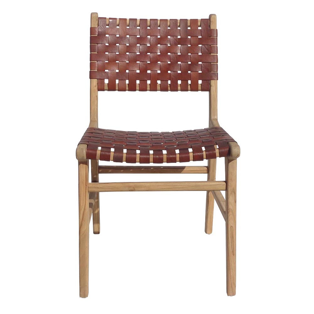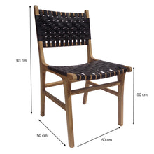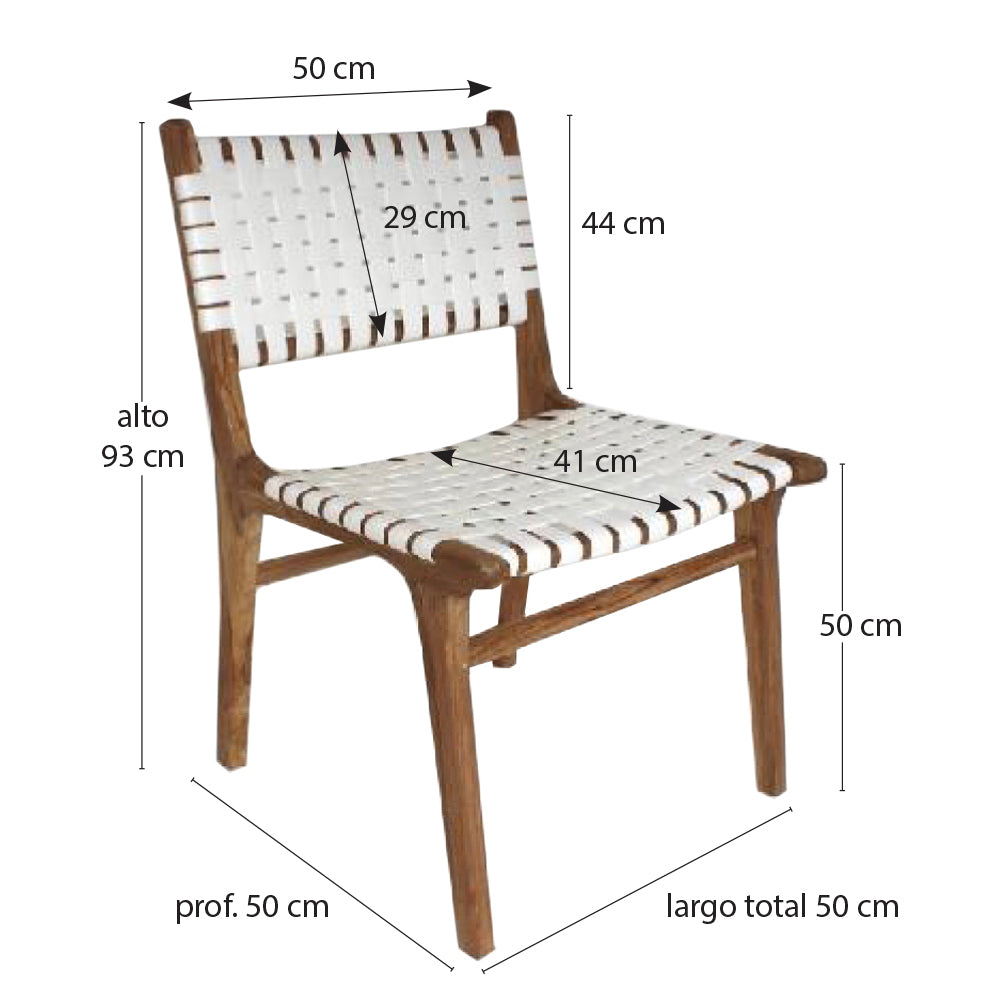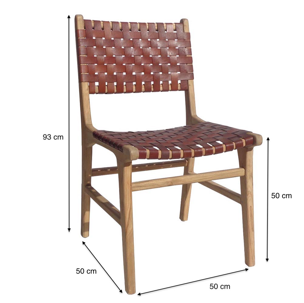 Seat height : 50 cmMaterial: Teak wood structure / seat and back upholstered with leather stripsDelivery in 3-4 weeksWashing instructions : Clean with a damp cloth / clean with colorless wax