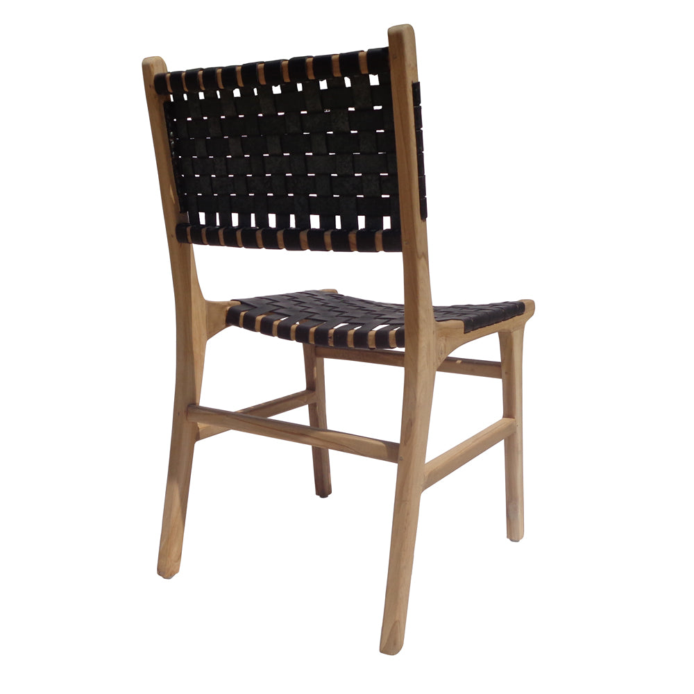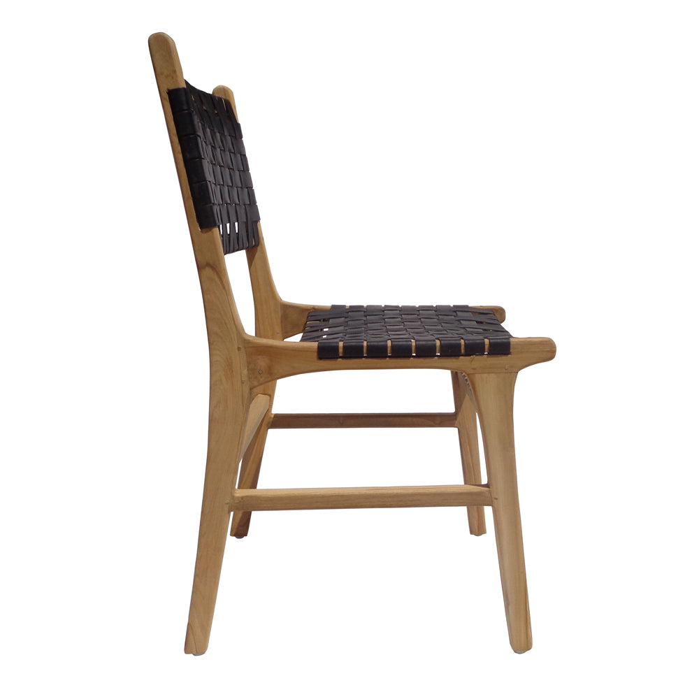 Leather and teak wood dining chair