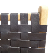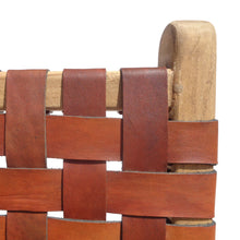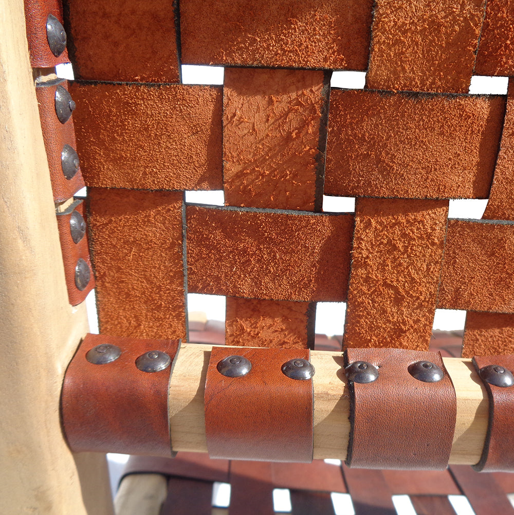 Material: Teak wood structure / seat and back upholstered with leather strips