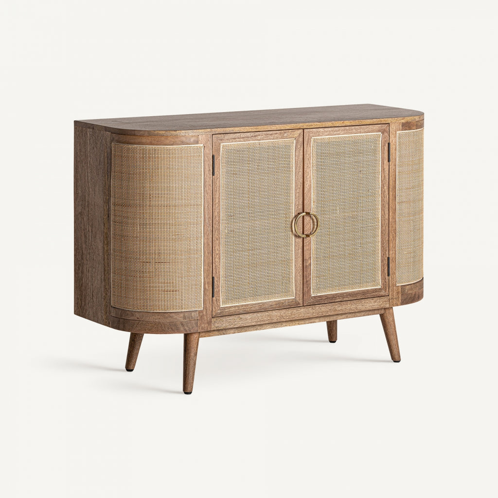 Natural colour, style northern / nordic. Made of mango wood and wicker.