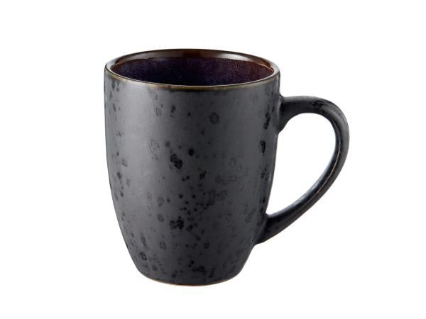 Mug with handle made of sturdy stoneware with matt black exterior and shiny dark blue glaze inside. The mug is 10 cm high and holds 30 cl. Enjoy your coffee, tea and hot chocolate in this beautiful mug and combine with the other fabulous colours of the collection.