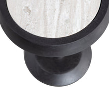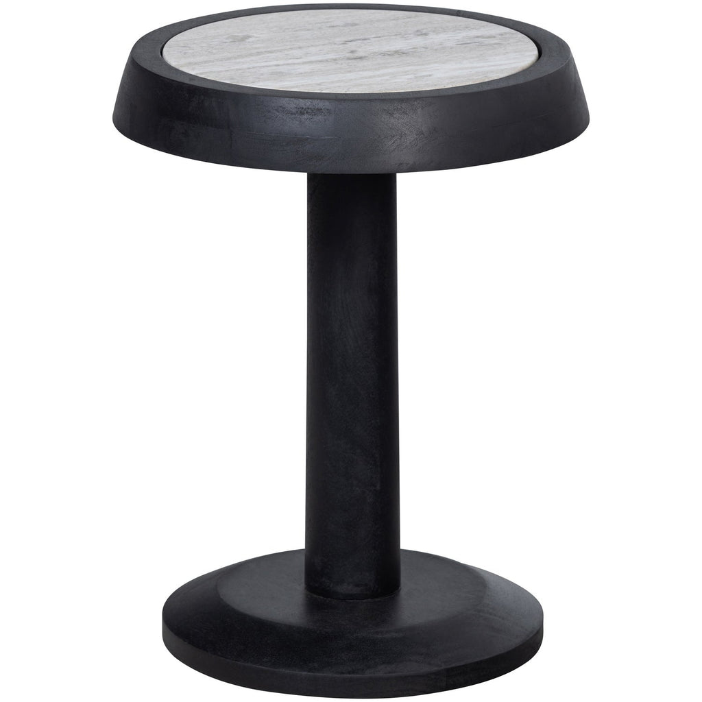 - Tough side table - Made of black-coloured mango wood - Inlaid marble top - H 46 cm x Ø 36 cm