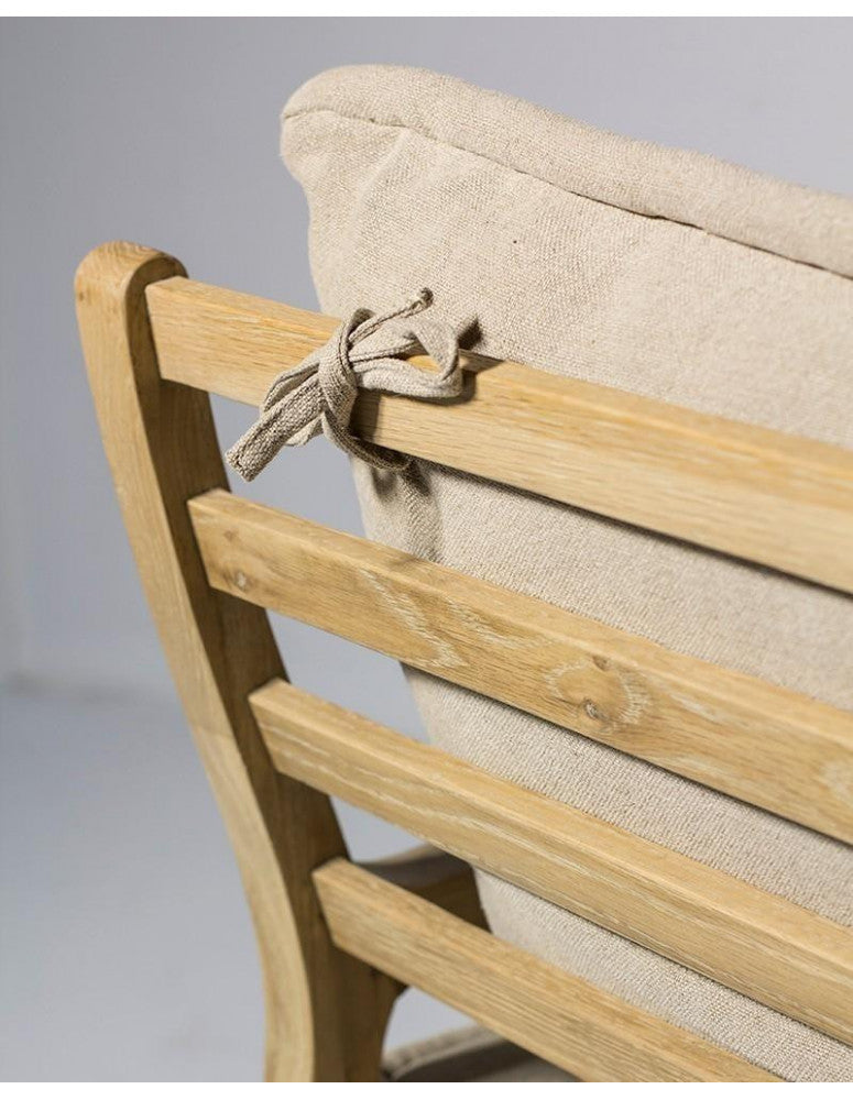 Oak wood in natural colour Ecru colour linen cushions included Seat height: 42 cm 68x83xH77 cm