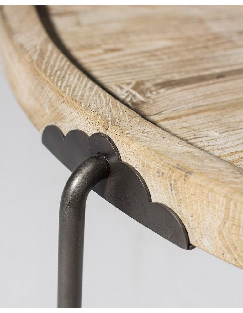 Natural color oak wood topIron black structureØ90XH36 cm