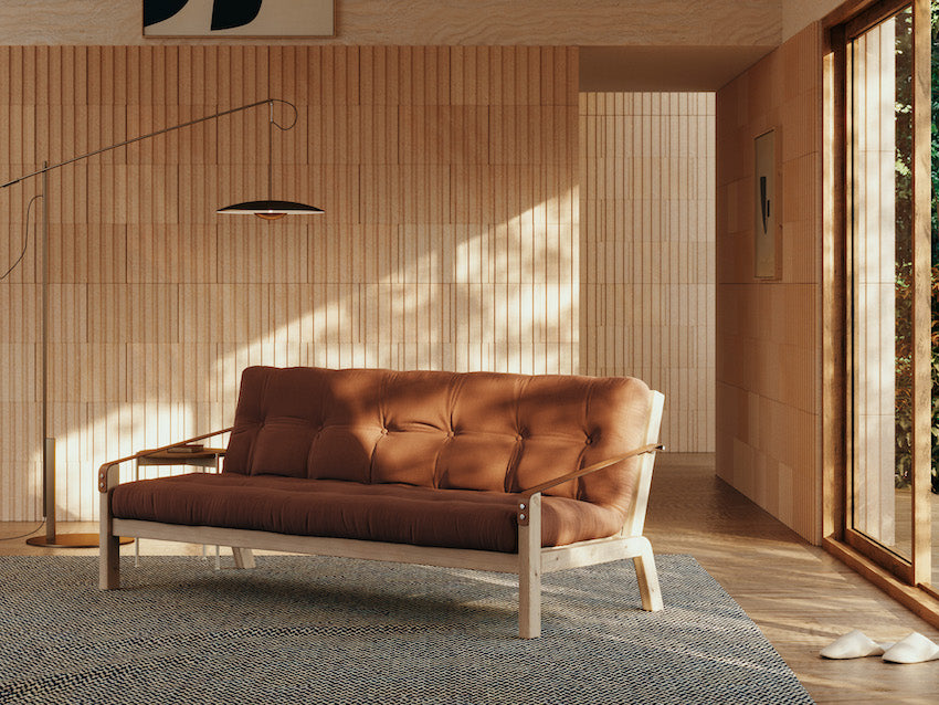 Read . Unstrap . SleepInspired by the Scandinavian way of living, Poetry charms with its minimalistic design and brilliant functionality. Set to challenge the traditional sofa design, the creative process behind Poetry focused on clean lines and high adaptability to a multitude of living spaces. The innovative leather strap armrests keep the structure of the item in place when used as a sofa but allow it to be turned into a spacious bed in an instance.Design by Says Who for Karup Design.