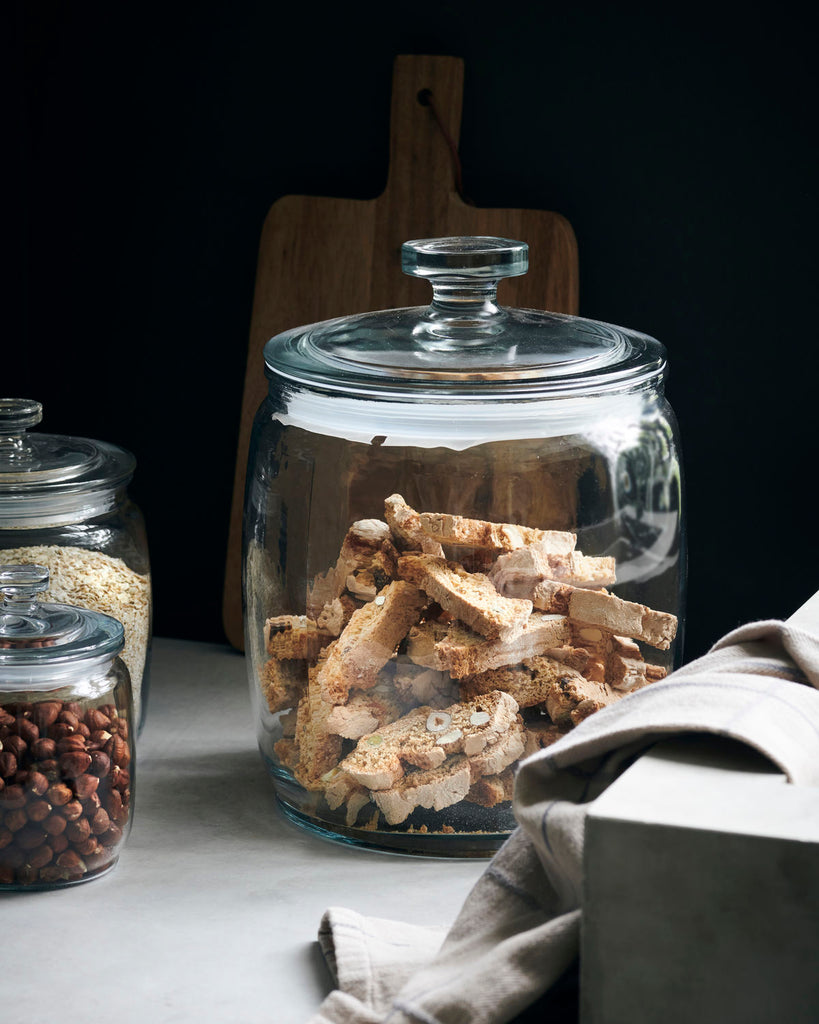 Store flour, pasta, cereals and other staples in the Ville storage jar from House Doctor. The large glass jar comes with a lid that makes sure your food stays fresh for longer. Keep your kitchen décor light yet elegant with glass jars and place a row of them on the kitchen counter or a shelf for easy access to the items you use every day.