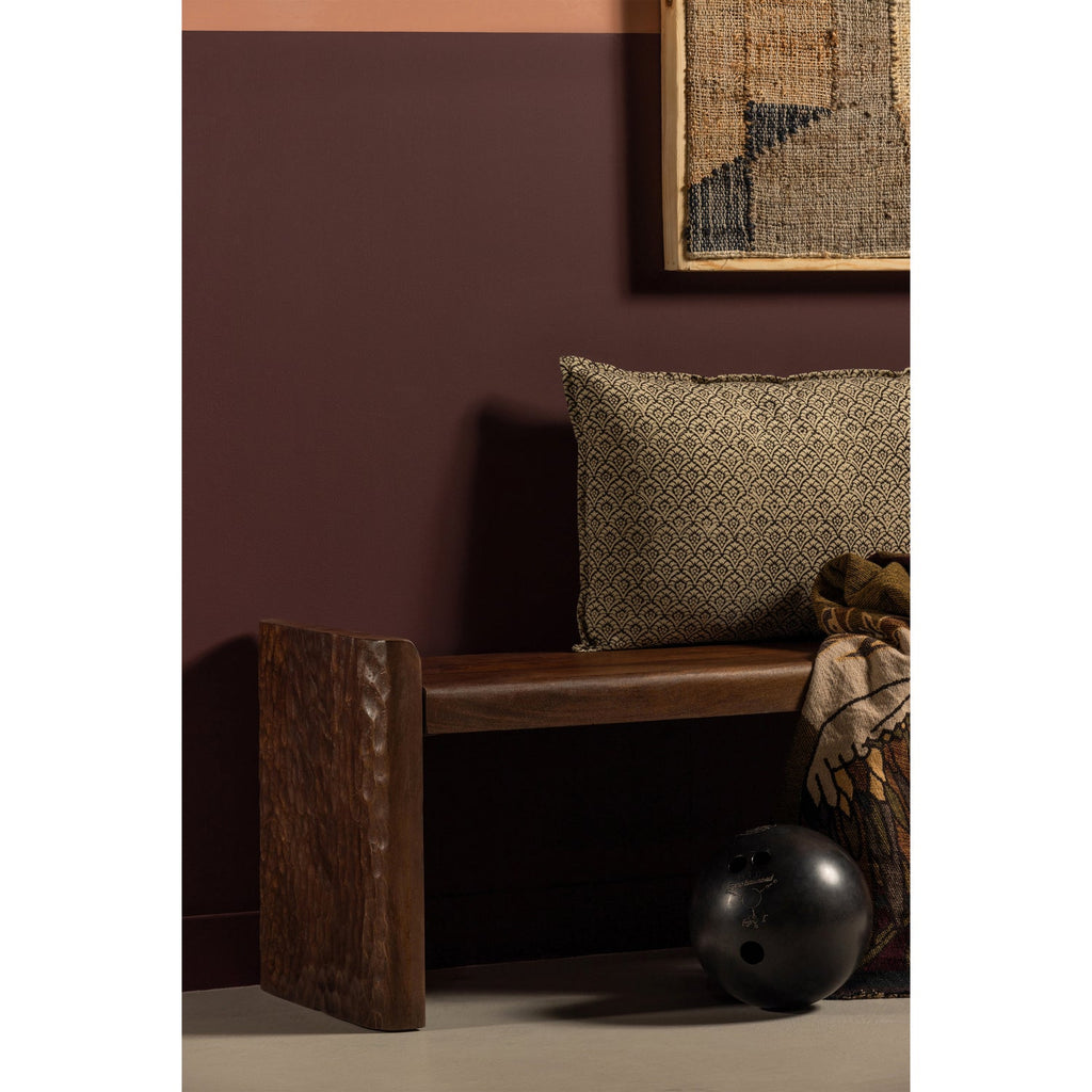 - Friendly bench in a warm color - Made from mango wood - Characterized by the playful woodwork in the legs - H 40 cm x W 120 cm x D 45 cm