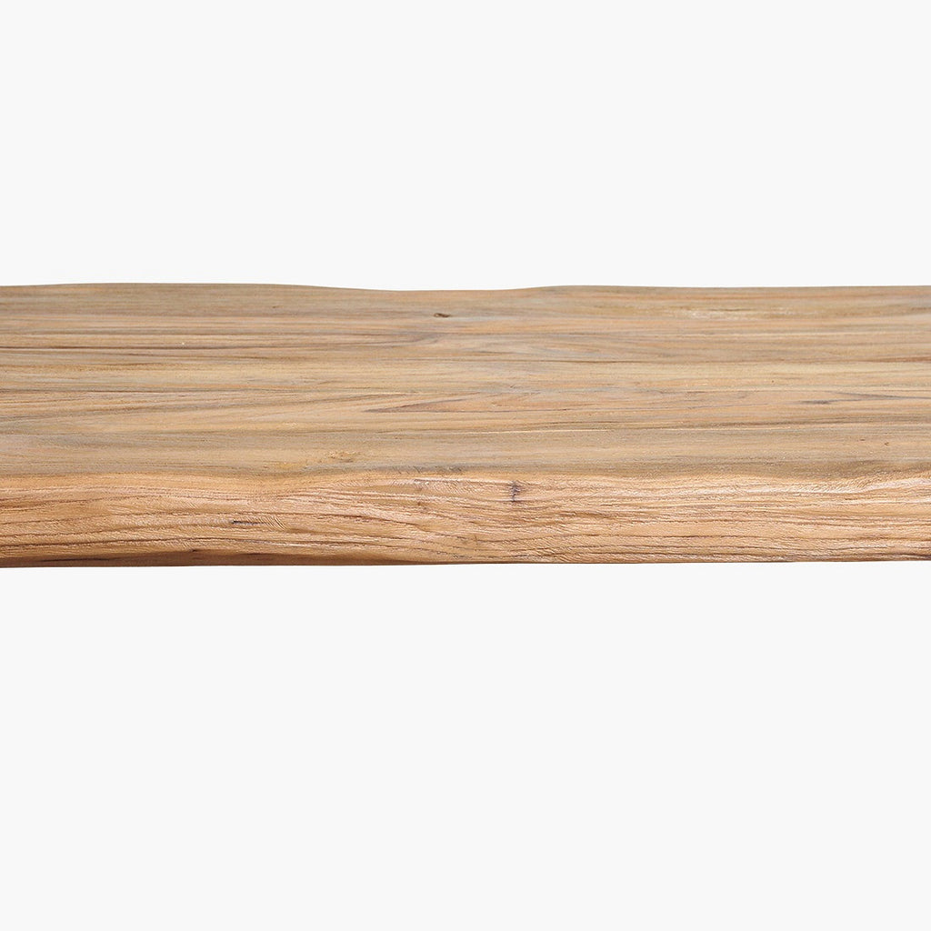 Elevate your living space with the timeless charm of our recycled teak coffee table.Origin:This coffee table is made of FSC recycled teak wood and carry the FSC logo. This type of teak wood comes from old plantations in Indonesia. The origin of this wood is responsible because the plantations are sustainably managed by the Indonesian government. Teak has been a favorite hardwood for furniture, construction and shipbuilding for centuries, also because it is very durable and suitable for outdoor use. Teak wood is native to India, Thailand, Laos and Myanmar, but due to extensive logging, it only grows in natural forests in Myanmar. In Indonesia it was introduced in the 16th century and large plantations were established during the Dutch colonial period. After Indonesia became independent, the Indonesian government managed the plantations. This has been quite successful, as teak is a valuable wood and it has always been economical to replant teak after felling trees. Almost all the teak wood in Indonesia used for furniture production comes from these plantations. Only for local use is sometimes used teak from small farms near villages. Because it does not grow in Indonesia’s natural forests, no tropical forests are cut down for teak wood.Since 2016, the Indonesian government has regulated all timber trade, with a system to trace all timber back to its source, where the trees were felled. This is part of a FLEGT trade agreement with the EU, to ensure that only legal timber is imported into the EU. These aspects together make teak production in Indonesia and its use for furniture both economically and environmentally sustainable.Material:FSC recycled teak wood.Maintenance:Since wood is a natural product, it naturally moves in in accordance to changing conditions, like cold and dry winter months. To prevent your furniture from gapping and moving, you have to keep your home’s humidity in check. We therefore recommend a humidity in the room between 40% and 60%. To prevent the humidity from dropping too much, water evaporators or humidifiers can be used. It is also advisable not to place wooden furniture near heating sources or air conditioners. Please remember these are common occurrences in natural wood furniture. Even after the winter months, ensure good humidity in the house. Together with the warmer outside temperature, this will ensure that the wood works less quickly and therefore does not crack. No matter how good the drying and moisture treatment is, small shrinkage cracks can always occur, especially in the head/end of a plank or product. This is a normal operation of the wood and is usually barely noticeable. However, if a larger crack develops, we recommend contacting our customer service.-The wood has a water-based coating that protects against water stains. But it is recommended to only use the furniture indoors and not to leave liquids on the wood for a long time.-Small damage or scratches in the wood with its natural color can only be treated on site with transparent or very light colored oil.