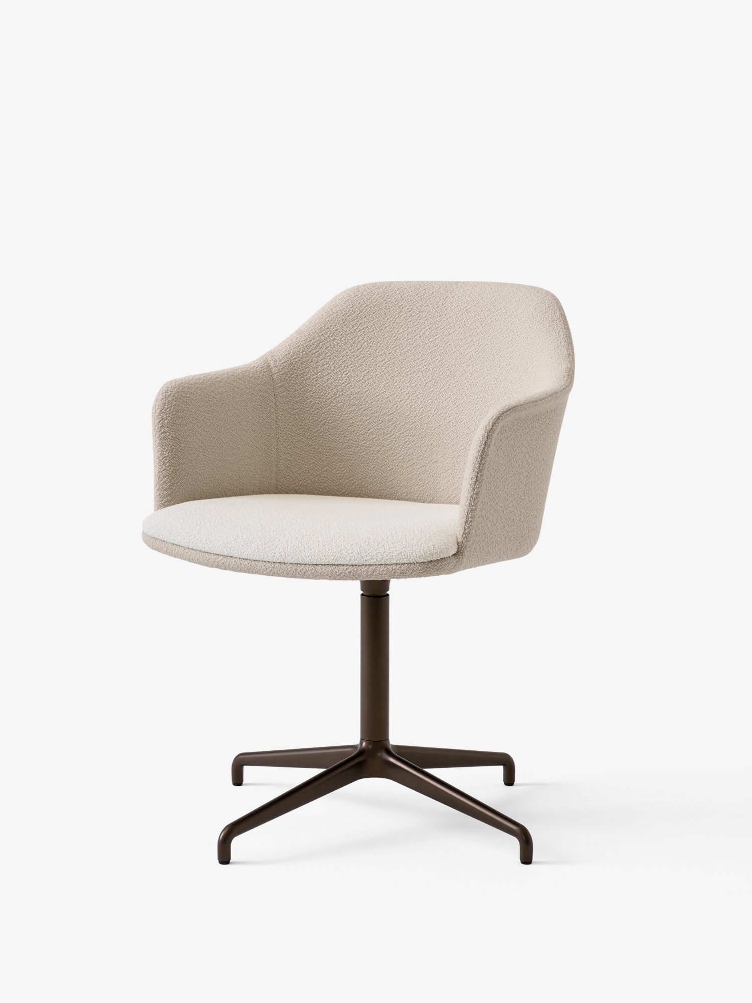 Product Details Product categoryUpholstered armchair Production processShell made from 100% recycled polyprolene with fiber glass, covered in HR foam with fabric or leather upholstery, aluminium swivel base for HW40-HW42 and swivel with return for HW45-HW47. EnvironmentIndoor MaterialPolyproplylene, glass fiber, HR foam, upholstery, aluminium swivelbase. UpholsteryAvailable in a variety of fabrics made to order (3-6 weeks).COM must be approved by &Tradition to ensure suitability for upholstery. Base finishesBlack, Bronzed, Polished Aluminium GlidersFelt gliders installed as standard. Plastic gliders available upon request. DimensionsH: 81cm/32.4in, W: 61cm/24.4in, D: 56.5cm/22.6inSeat height: 45.5cm/18.2inArmrest height: 68cm / 26.8in WeightHW40 & HW45: Product: 9.9kg/ Incl. packaging: 13.9kgHW41 & HW46: Product: 11kg/ Incl. packaging: 15kgHW42 & HW47: Product: 11kg/ Incl. packaging: 15kg Packaging dimensionsH: 85cm/34in, W: 62cm/24.8in, D: 62 cm/24.8in Strength, durability and safety testingThe chair is tested for strength, durability and safety according to: – EN 16139 Level 2 – Extreme use.