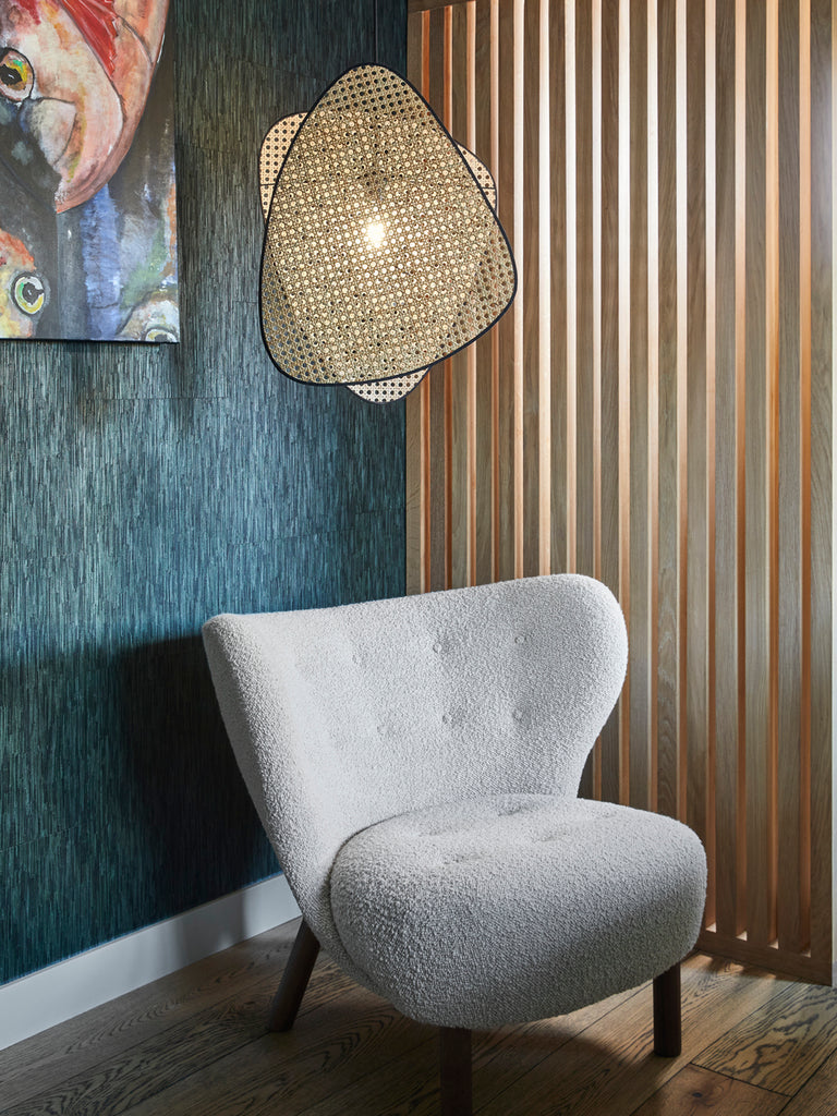 1-light suspension with painted metal structure, 2 cane screens. Equipped with a textile cord and an adaptable DCL metal roof.
