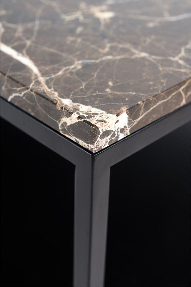 The perfect blend between contemporary and luxury elements, this clean-lined coffee table brings a degree of understated class to any room. With its modern open metal frame and its dark, natural-toned, marble serving as a nod to classic designs, the Stone coffee table is a centrepiece in every sense of the word. Designed by Djordje Cukanovic. Polished Dark Emperador marble top with a black metal frame. Delivery in 3-4 weeks Installed dimensions Width 120 cm Depth 70 cm Height 38 cm Nett weight 65.5 kg