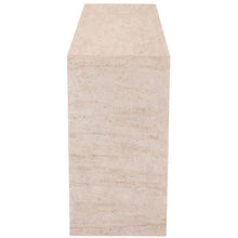 Console with a simple design made of stone in travertine color and suitable for outdoors. It is elegance and sophistication made console.