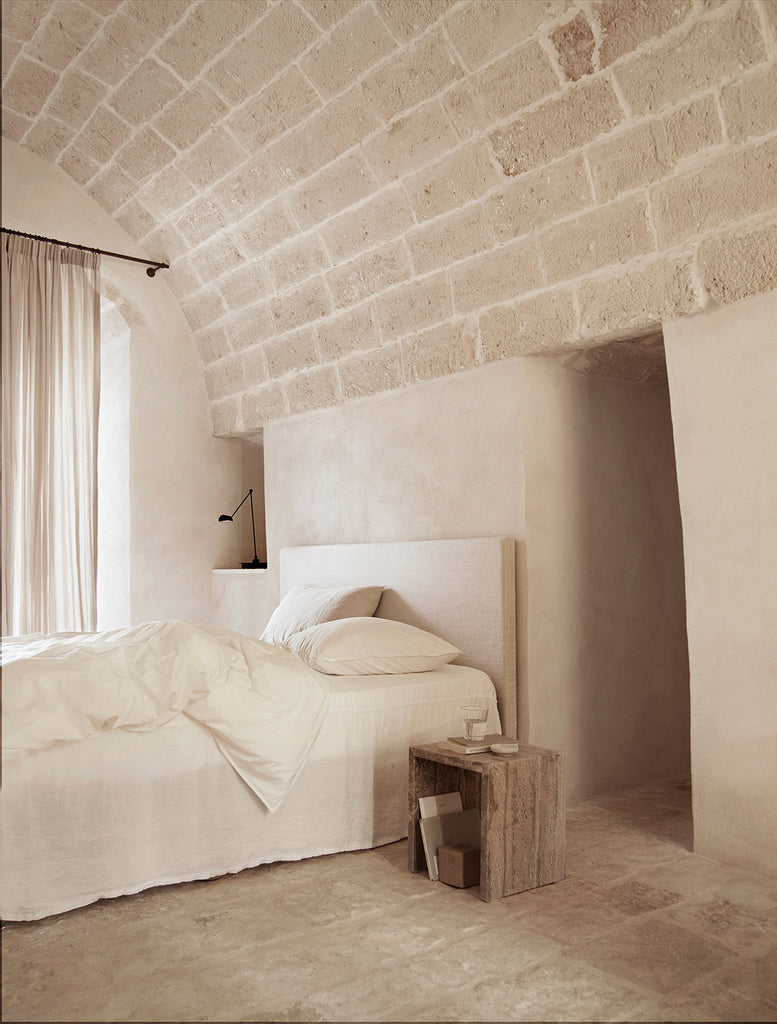 The material travertine is a natural material that creates a beautiful variation in both colour and look, which makes each product unique. The small lines and holes are filled with resin to make surfaces easier to clean.