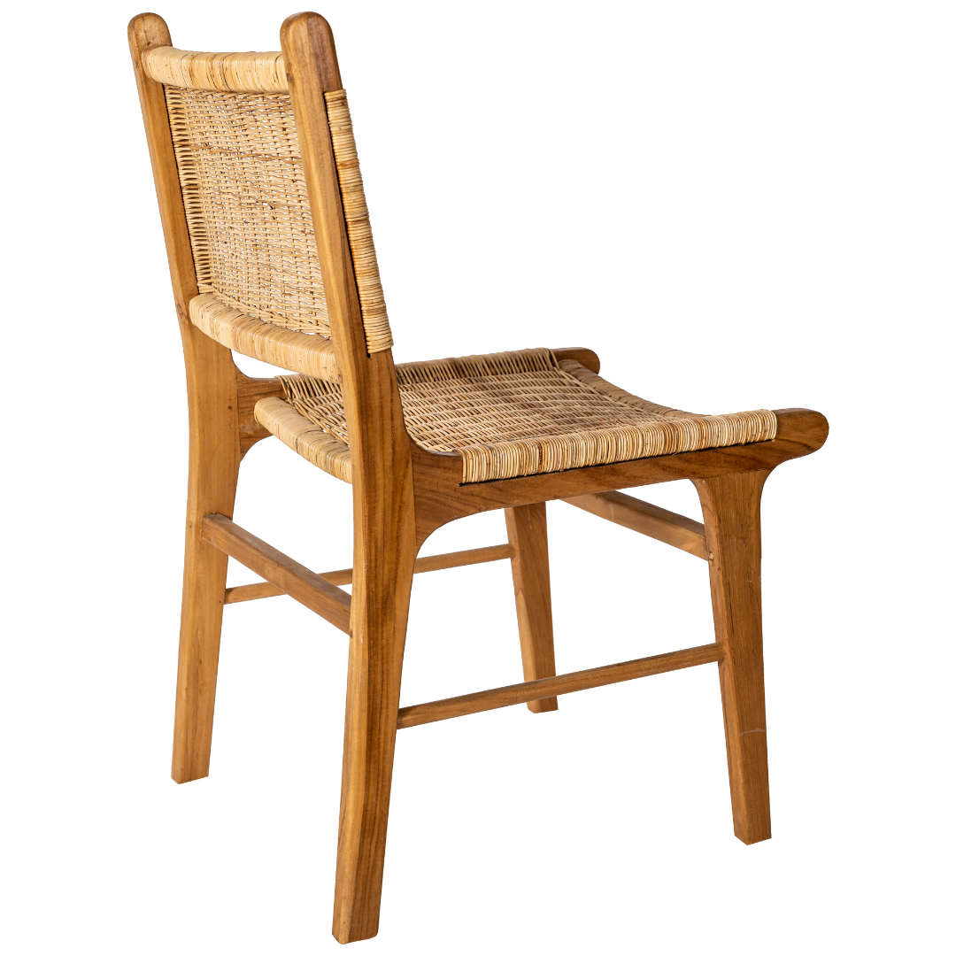 WIDTH : 50 cmDEPTH : 57 cmHEIGHT : 85 cm SEAT HEIGHT : 45 cm Material : Teak wood structure and rattan seatColor : Natural