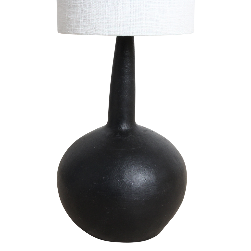 Beautiful table lamp from our Terra collection. The lamp has a nice white fabric shade, which contrasts with the black foot. This terracotta lamp is available in 2 sizes: medium and extra large. Material: The basic material of terracotta is clay, a naturally occurring material from the area. Another name for terracotta is 'baked earth'. The designer works closely with local craftsmen who use their traditional skills to make all the lamps by hand. Maintenance: -Wipe regularly with a slightly damp or dry duster without heavy stitching to avoid scratches. -Avoid all cleaning tools with a rough surface. -Do not use detergents or cleaning agents containing ammonia.
