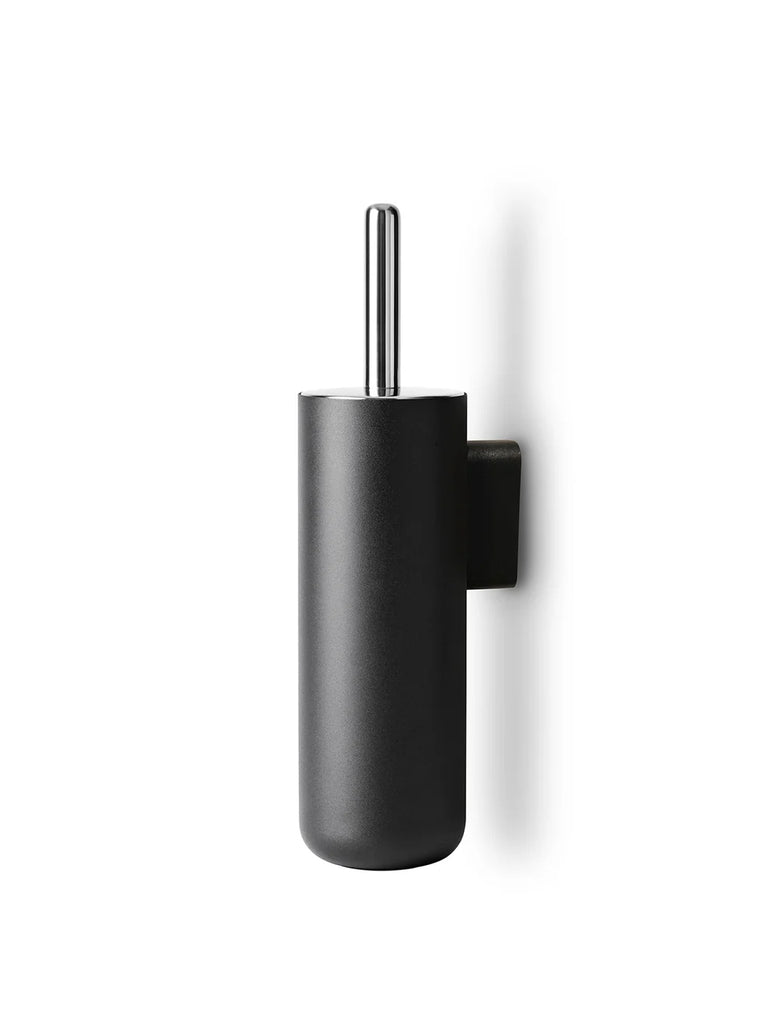 Thanks to a low centre of gravity, this Toilet Brush stands firmly on the floor. The brushed steel handle provides a comfortable grip, and the brush head can be replaced as needed, while the interior plastic holder can easily be taken out and cleaned. Available in black or white as well as a wall-mounted version.