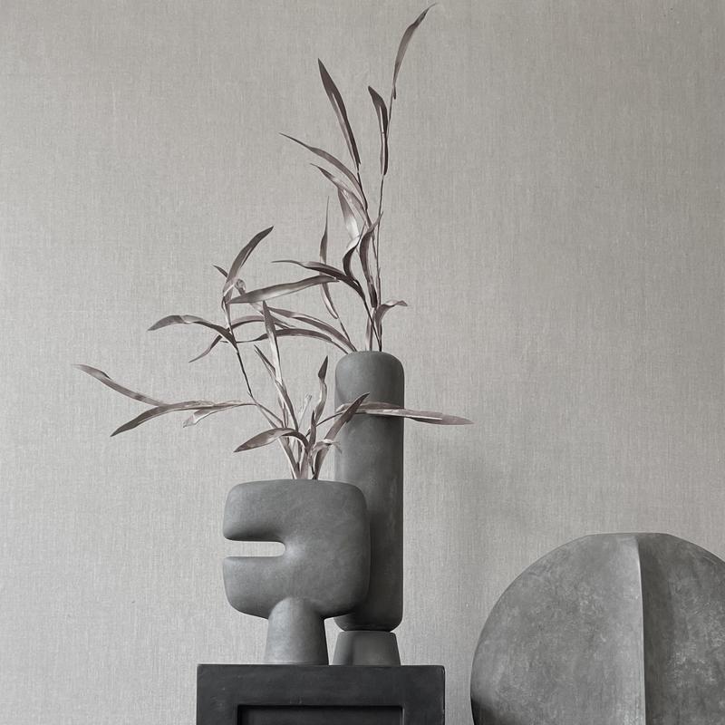 The Tribal collection is a series of vases designed as a sculptural take on the archetypal idea of a tribal mask. Place single flower stems in the narrow top opening or simply leave the vase as a standalone art object. Like open mouths on pedestals, the masks are a beautiful shaped item in calm, soothing and dusty terracotta and grey colours. As it is a hand glazed natural product, the colours may vary slightly and while it is not 100% waterproof, a bag for fresh flowers is included.